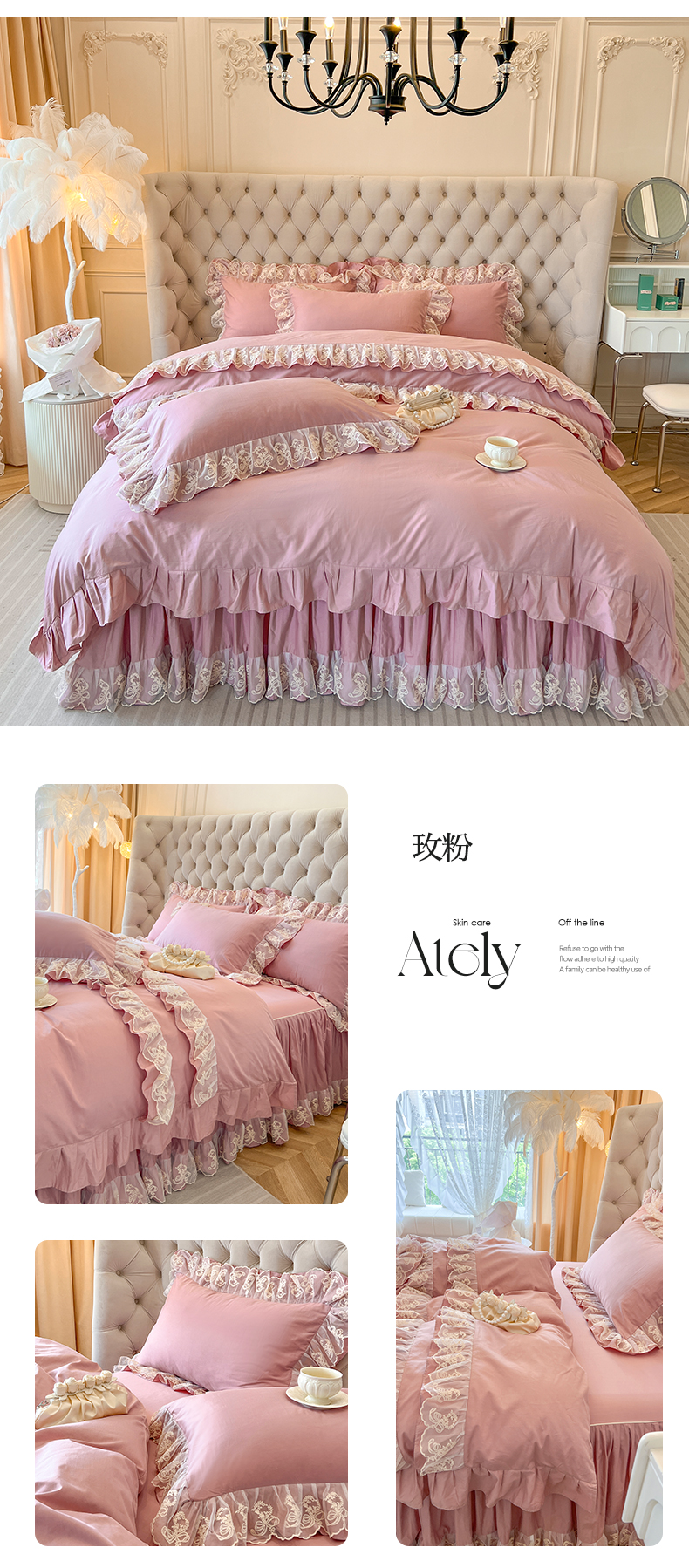 网红馆(ck家纺) 2025新款花之茵系列13372全棉床裙四件套 花之茵-玫粉