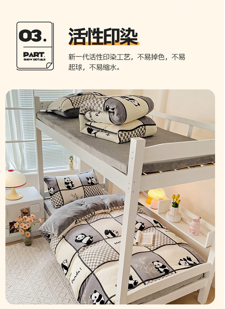 当前位置: 91家纺网 > 商品网购 > 床品套件 > 三件套 > 卡普二店 2024新款牛奶绒学生三件套系列 熊猫皮皮