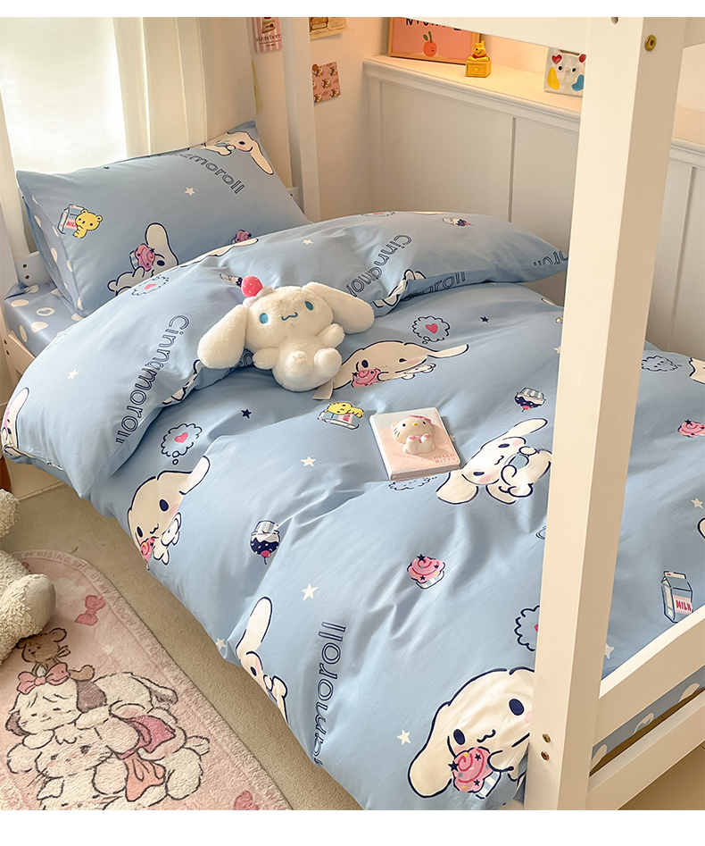 当前位置: 91家纺网 > 商品网购 > 床品套件 > 四件套 > 全棉普通四件套 > 桃子家居 2024新款三丽鸥授权纯棉少女印花系列学生三件套四件套 棉三丽鸥-牛奶玉桂狗