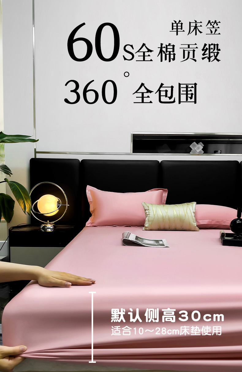 漫时光 2025新款60s全棉贡缎单床笠和单枕套 胭脂粉