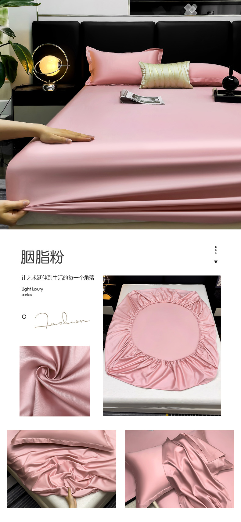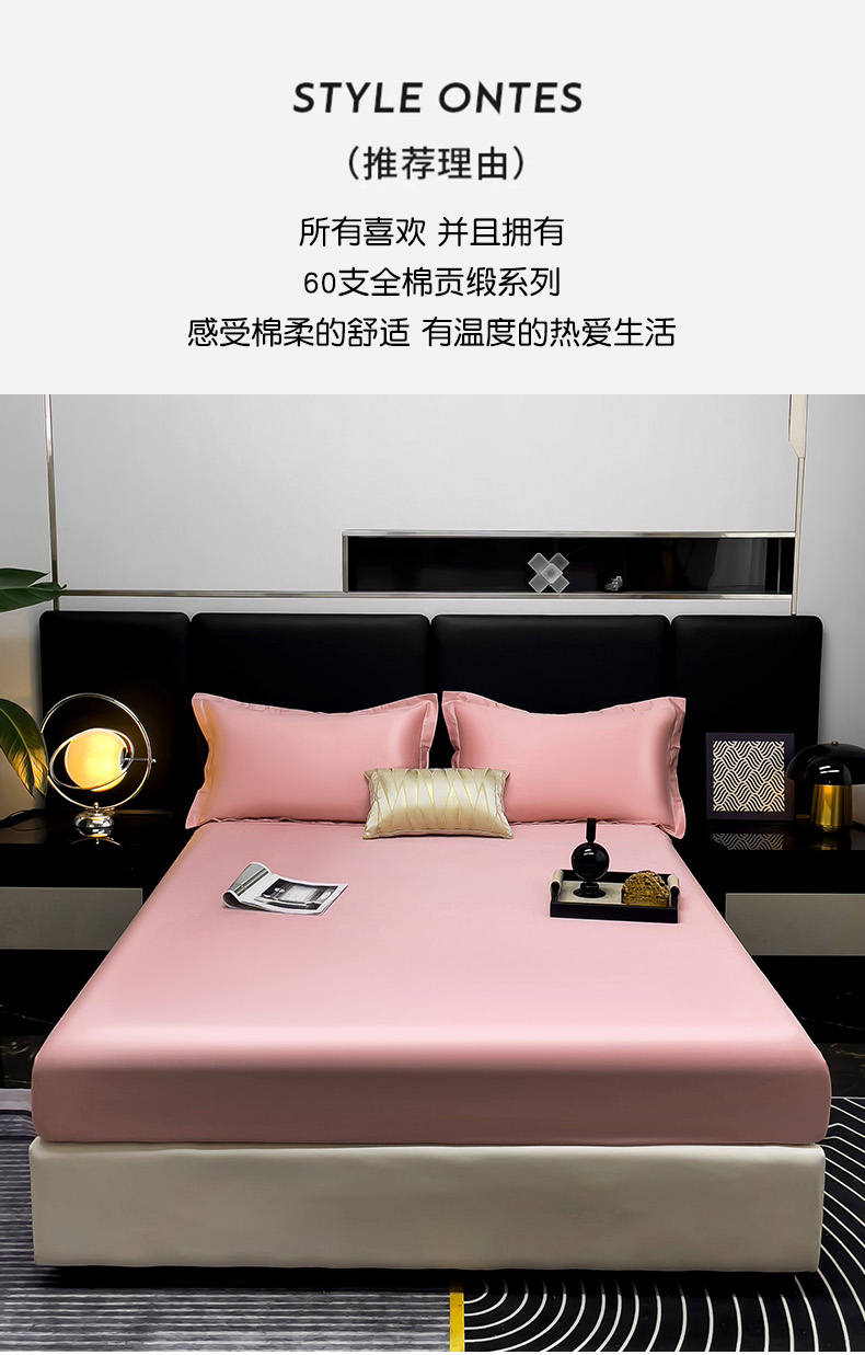 • 91家纺网 家纺一手货源 找家纺 漫时光 2025新款60s全棉贡缎单床笠和单枕套 胭脂粉