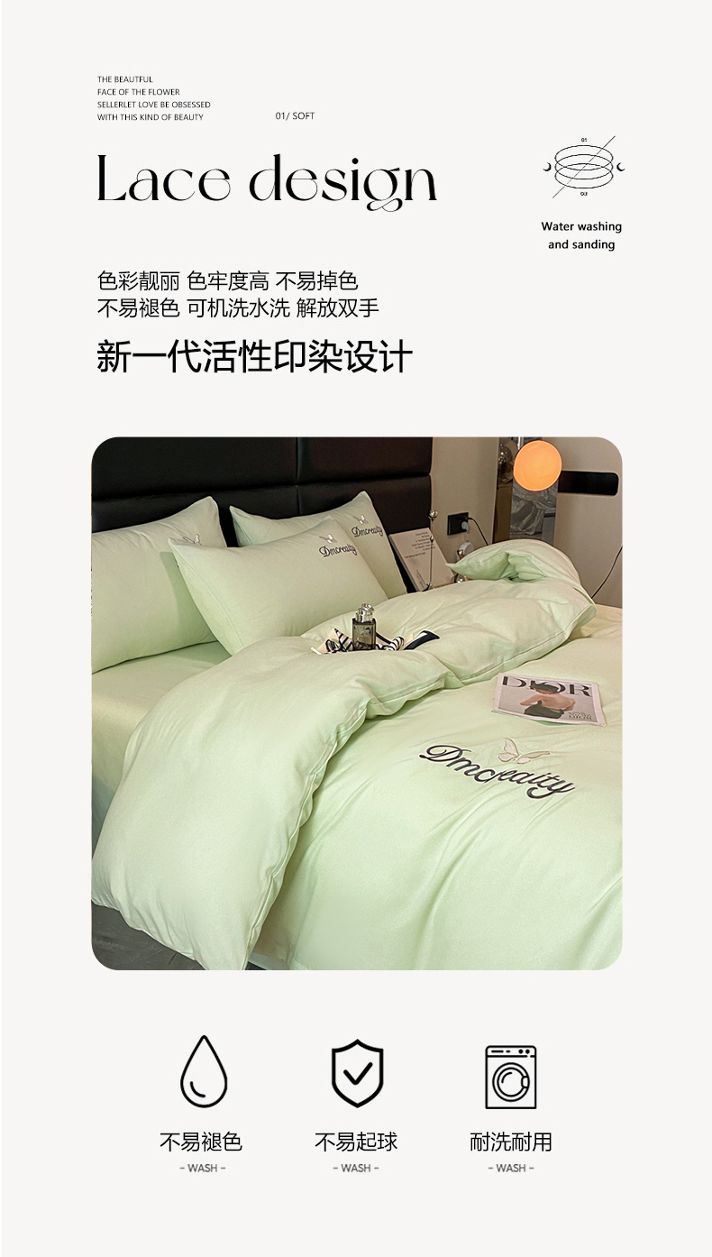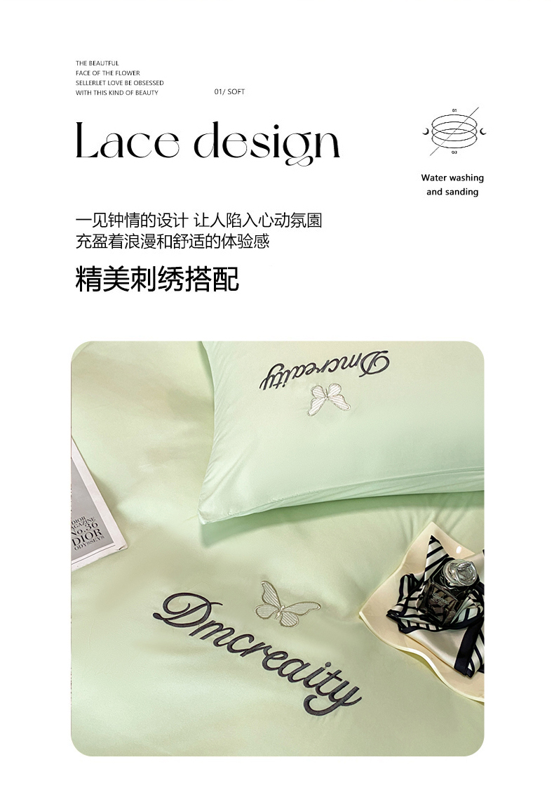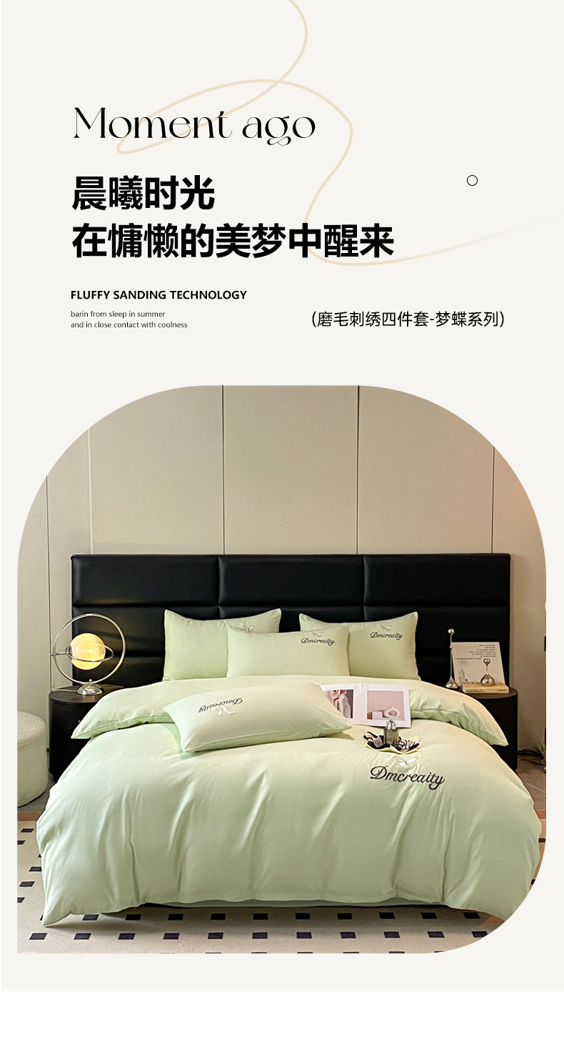 当前位置: 91家纺网 > 商品网购 > 床品套件 > 四件套 > 普通磨毛四件套 > 伊梵居 2025新款刺绣水洗棉磨毛四件套-梦蝶系列 梦蝶-抹茶绿