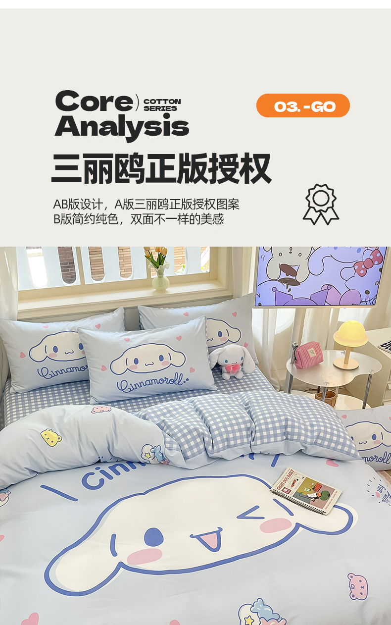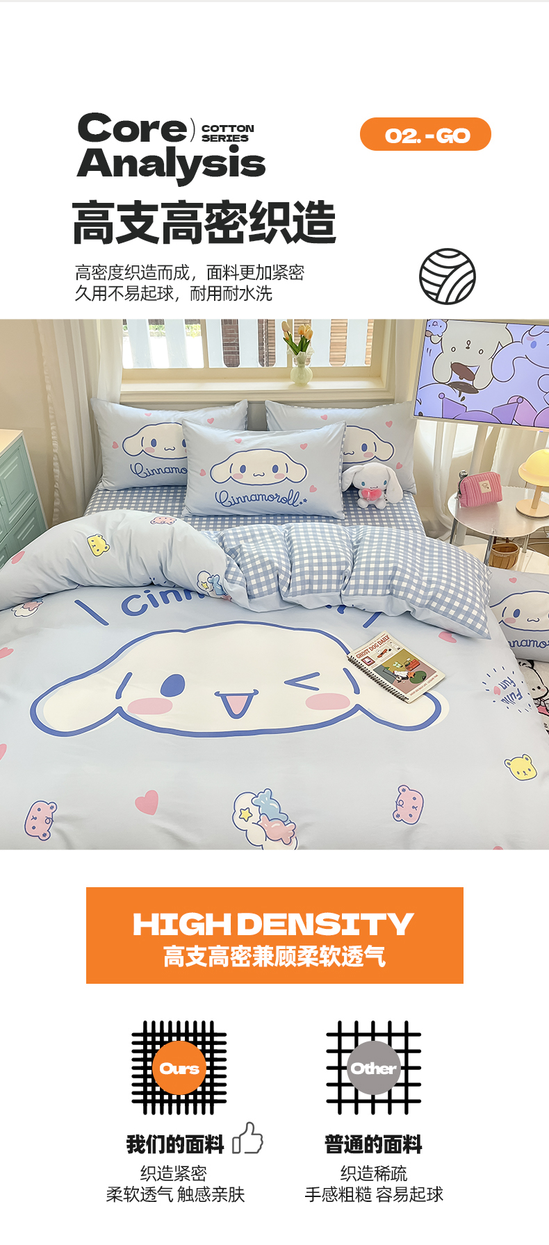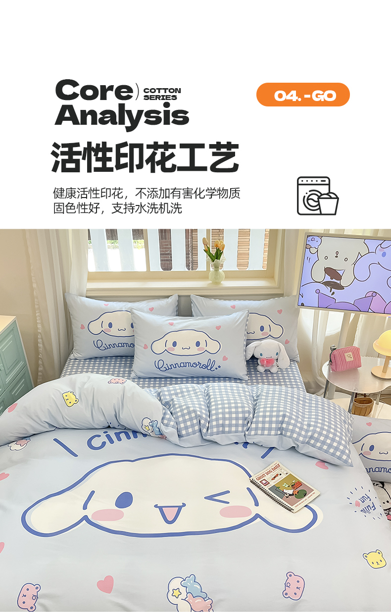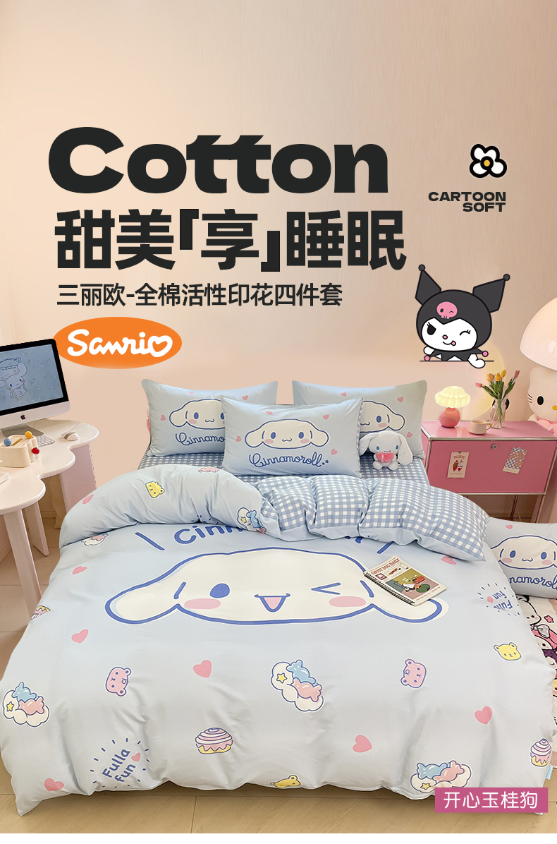 当前位置: 91家纺网 > 商品网购 > 床品套件 > 四件套 > 全棉普通四件套 > 桃子家居 2024纯棉大版三丽鸥卡通平网印花系列四件套 棉大版-D开心玉桂狗