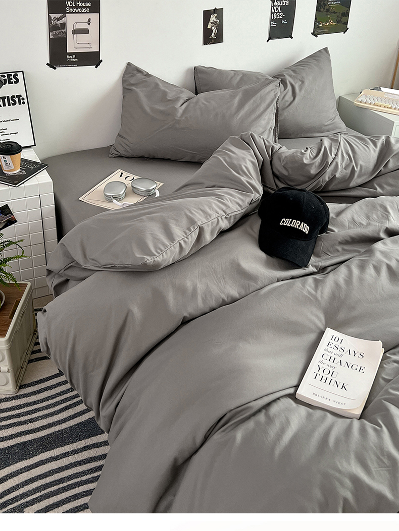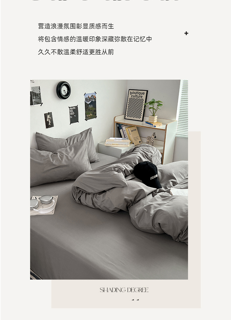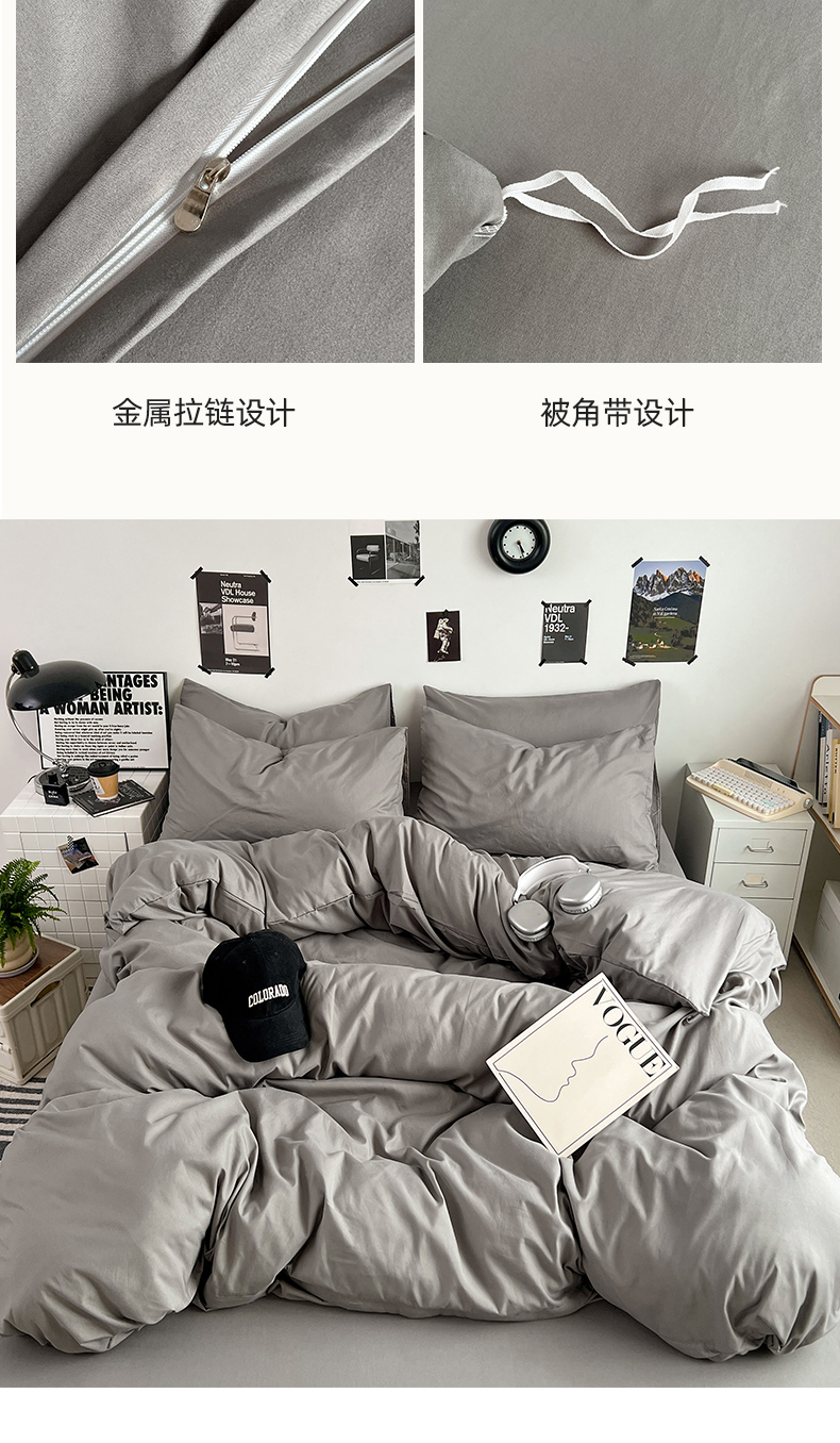 优卡迪家纺馆 2024新款水洗棉105克纯色双拼四件套系列(下载文件夹包含买家秀) 绅士灰