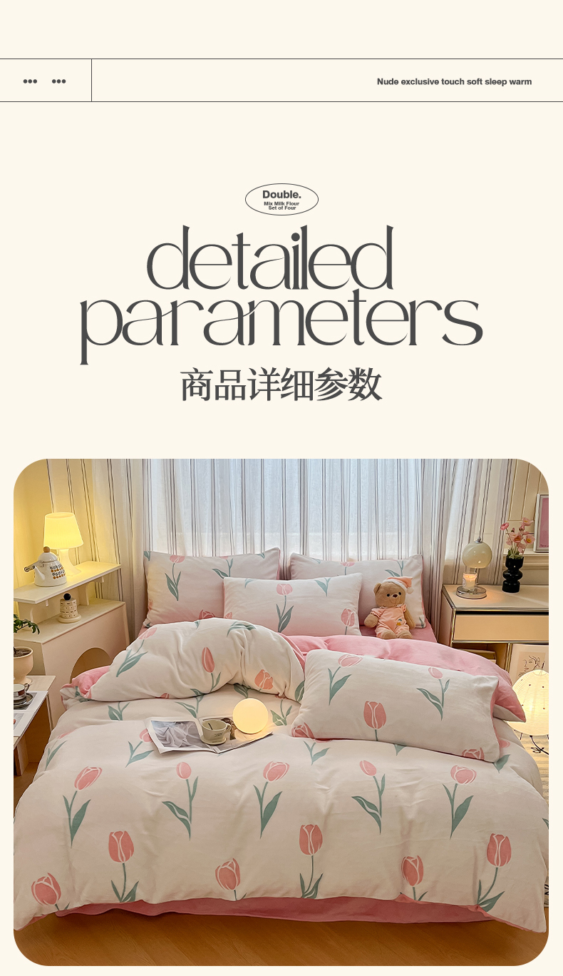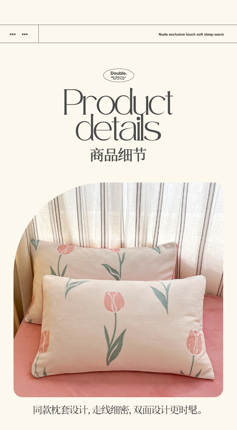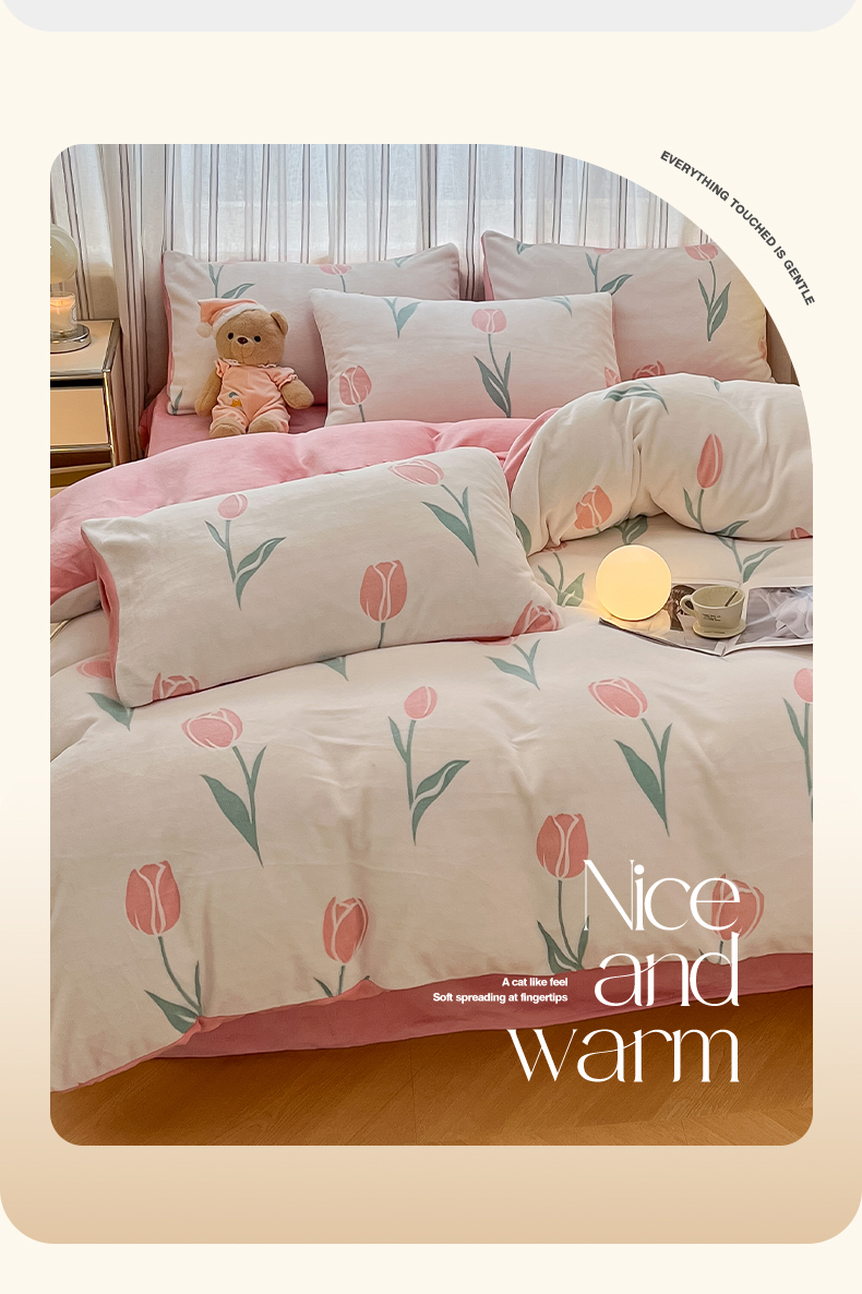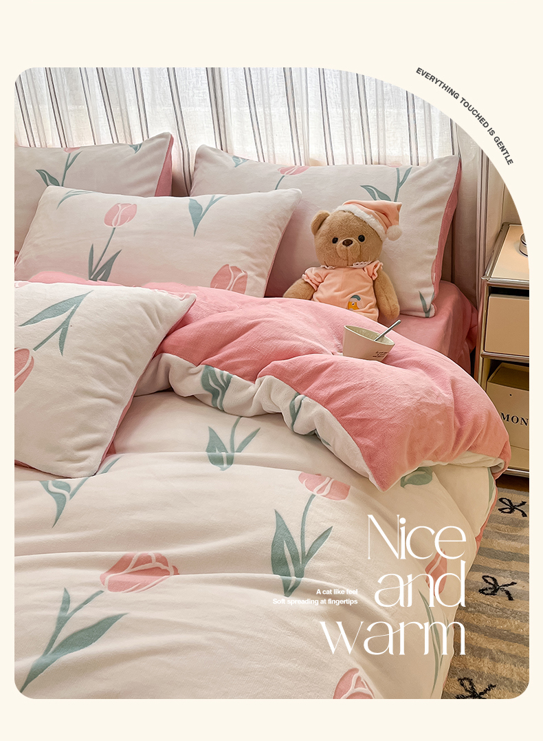 绘萱家居 2025新款高克重雕花雕印纯色牛奶绒四件套双拼法莱绒珊瑚绒 雕印郁金香-粉