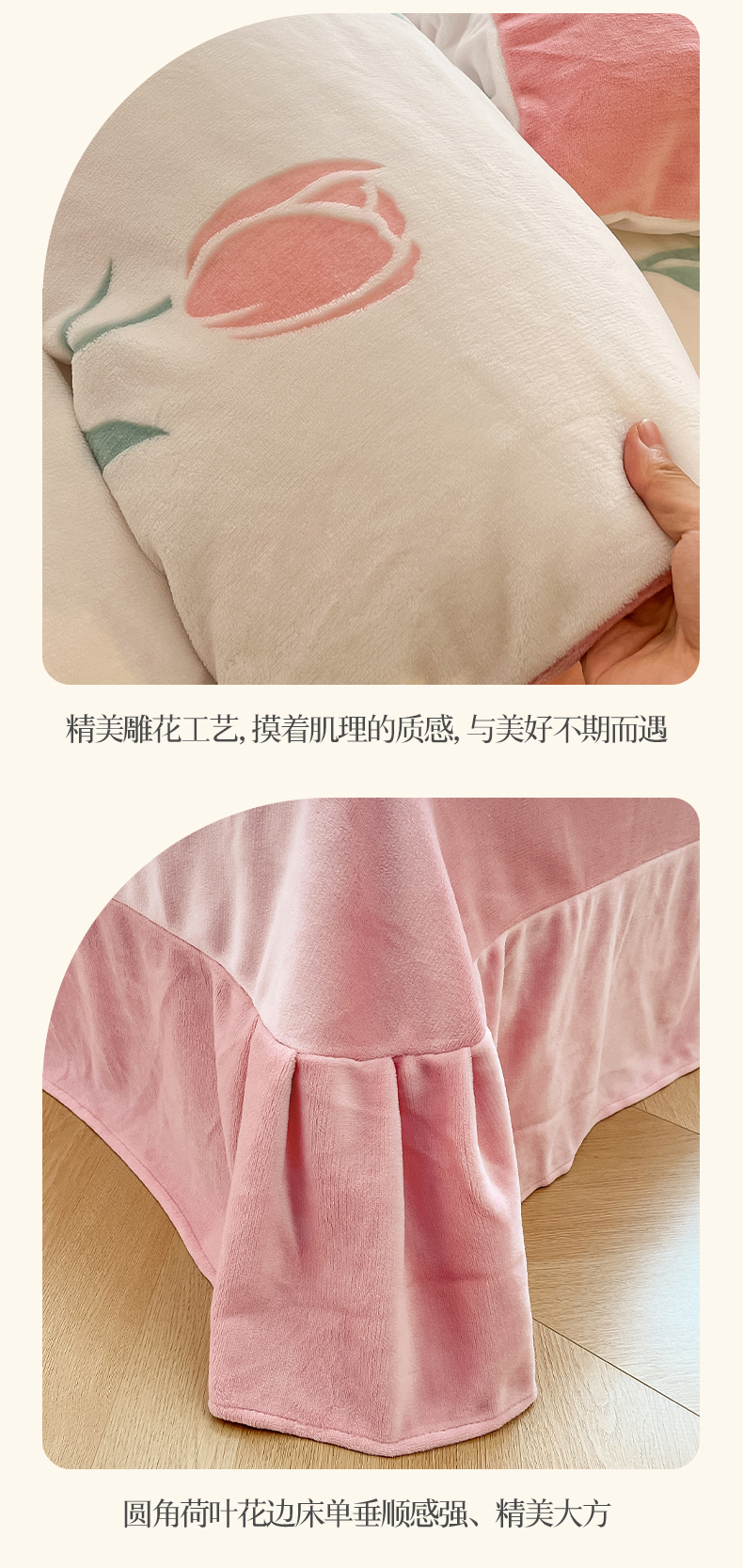商品名称:绘萱家居 2025新款高克重雕花雕印纯色牛奶绒四件套双拼法莱绒珊瑚绒 雕印郁金香-粉