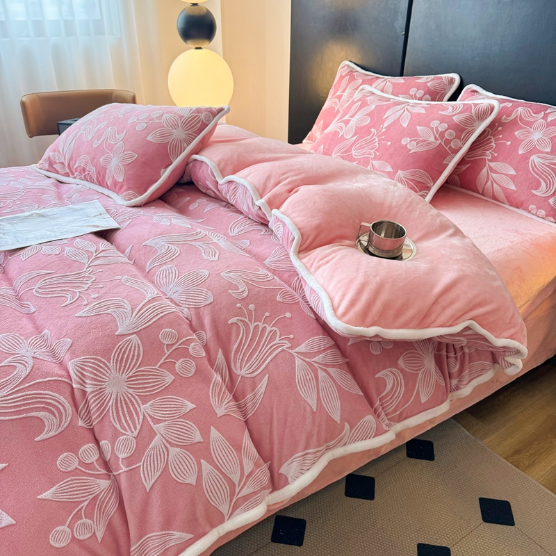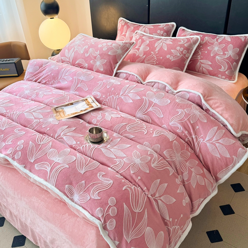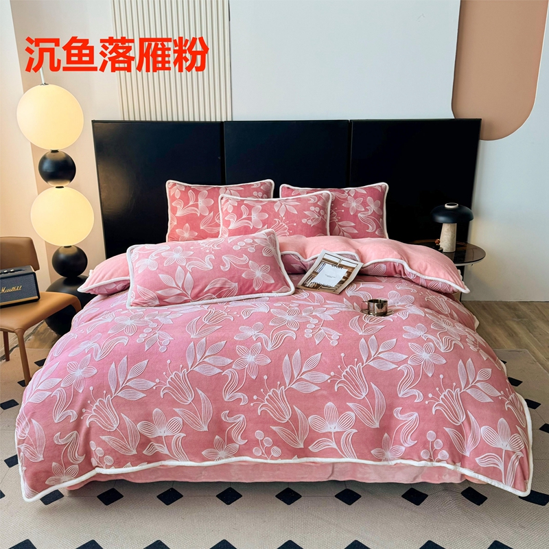 诺梵 2025新款立体雕花绒四件套_控价标准高于149,加大高于159 沉鱼落雁-粉