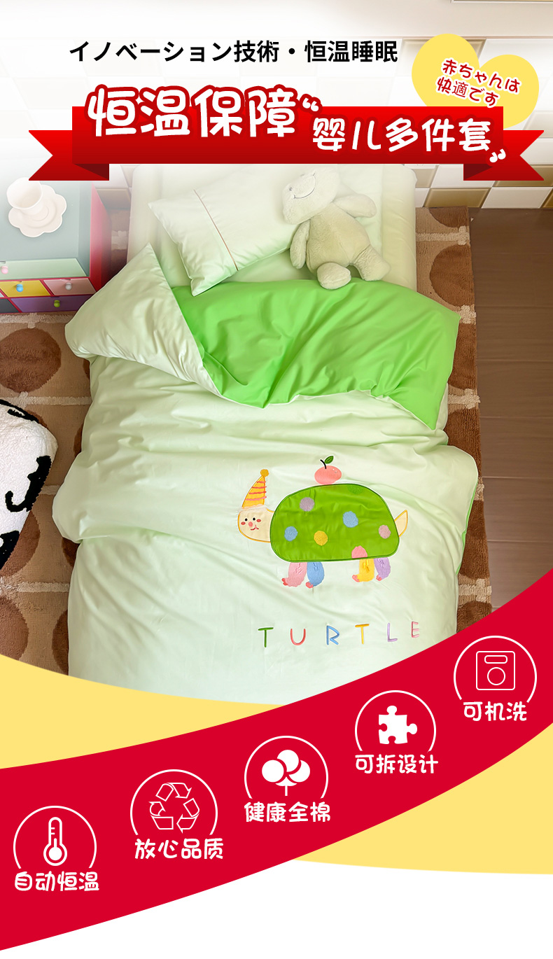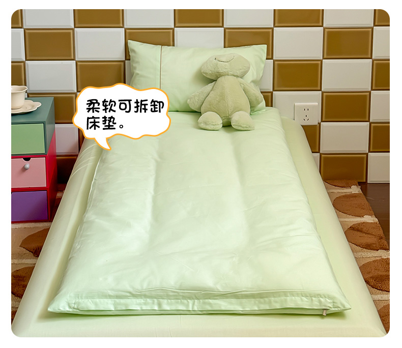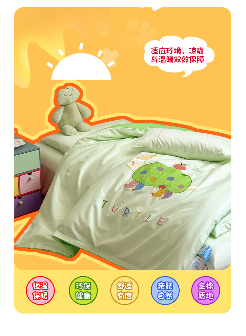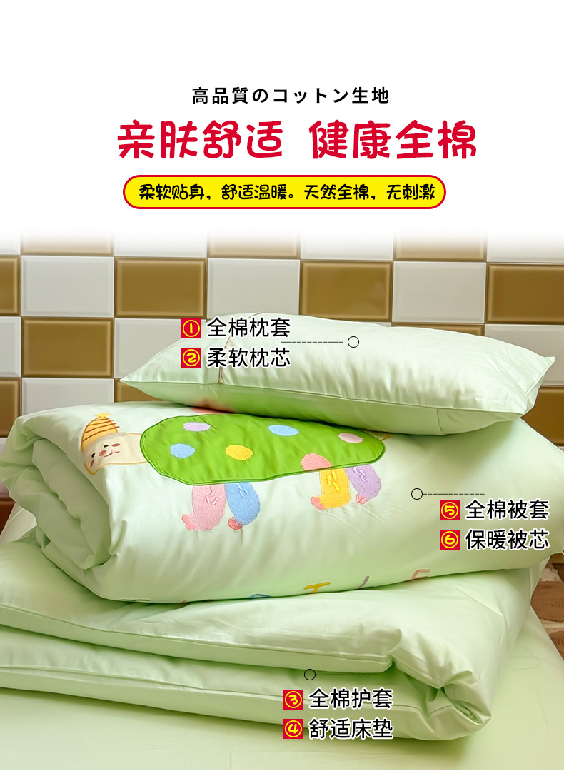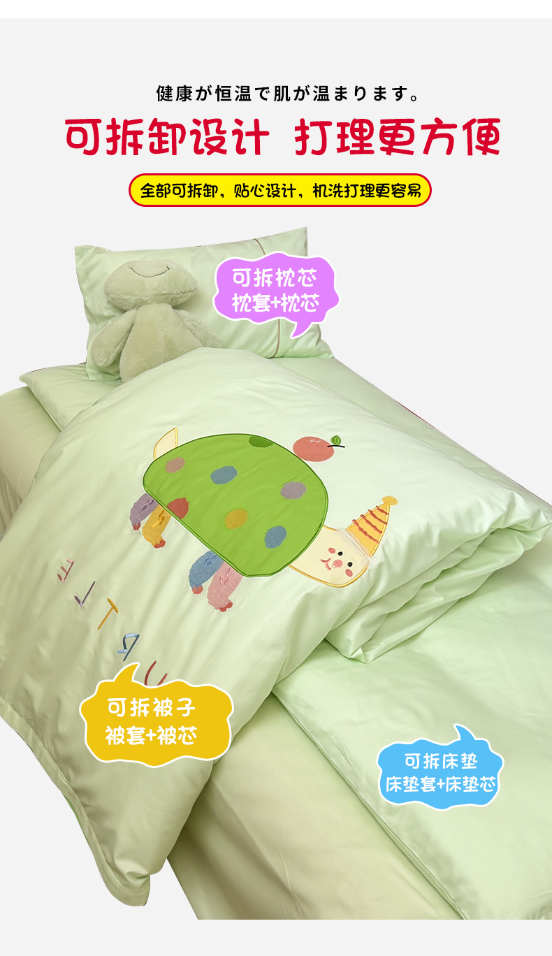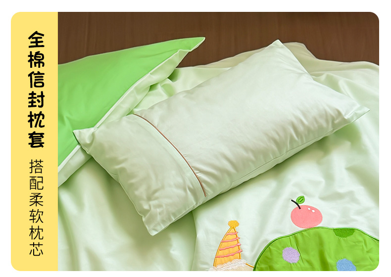 当前位置: 91家纺网 > 商品网购 > 床品套件 > 三件套 > 喜多兔 2024新款快乐多巴胺纯棉绣花幼儿园被子三件套 绿色彩虹小恐龙