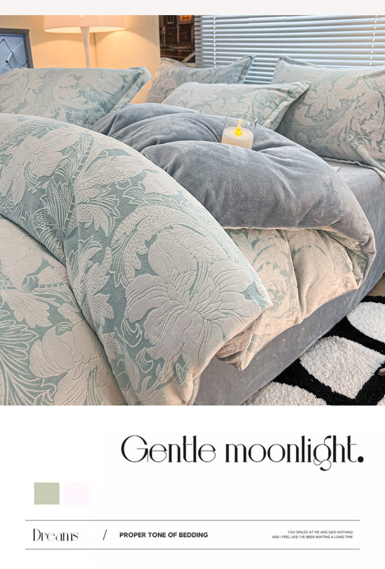 (总)倾慕 2025新款兔绒立体雕花加厚保暖系列四件套,爱娜玉,春絮蓝,春絮绿,伊宁玉,伊宁紫,优朵粉,珍妮粉,珍妮湖蓝