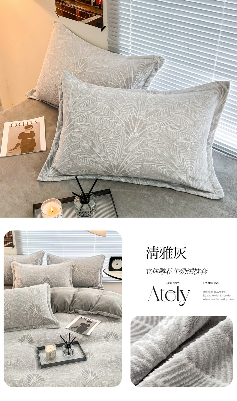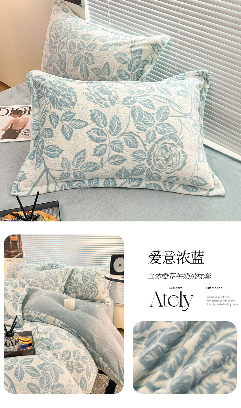 商品名称:2024新款A类高克重立体浮雕牛奶绒加厚保暖系列-枕套 恋语蓝