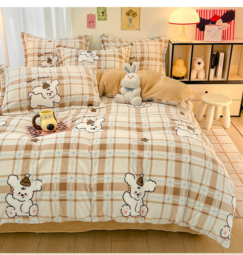2024新款A类高克重时尚风牛奶绒加厚保暖系列套件单品-被套 马戏小狗