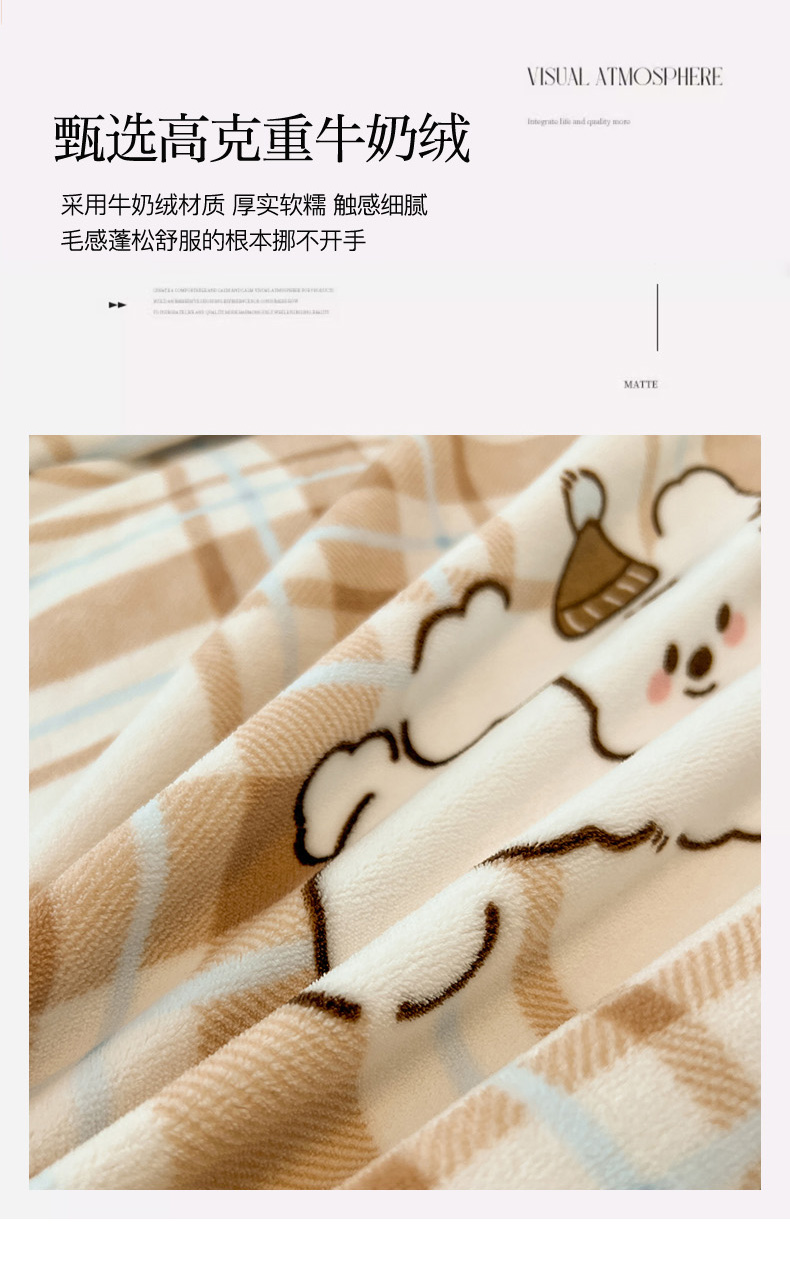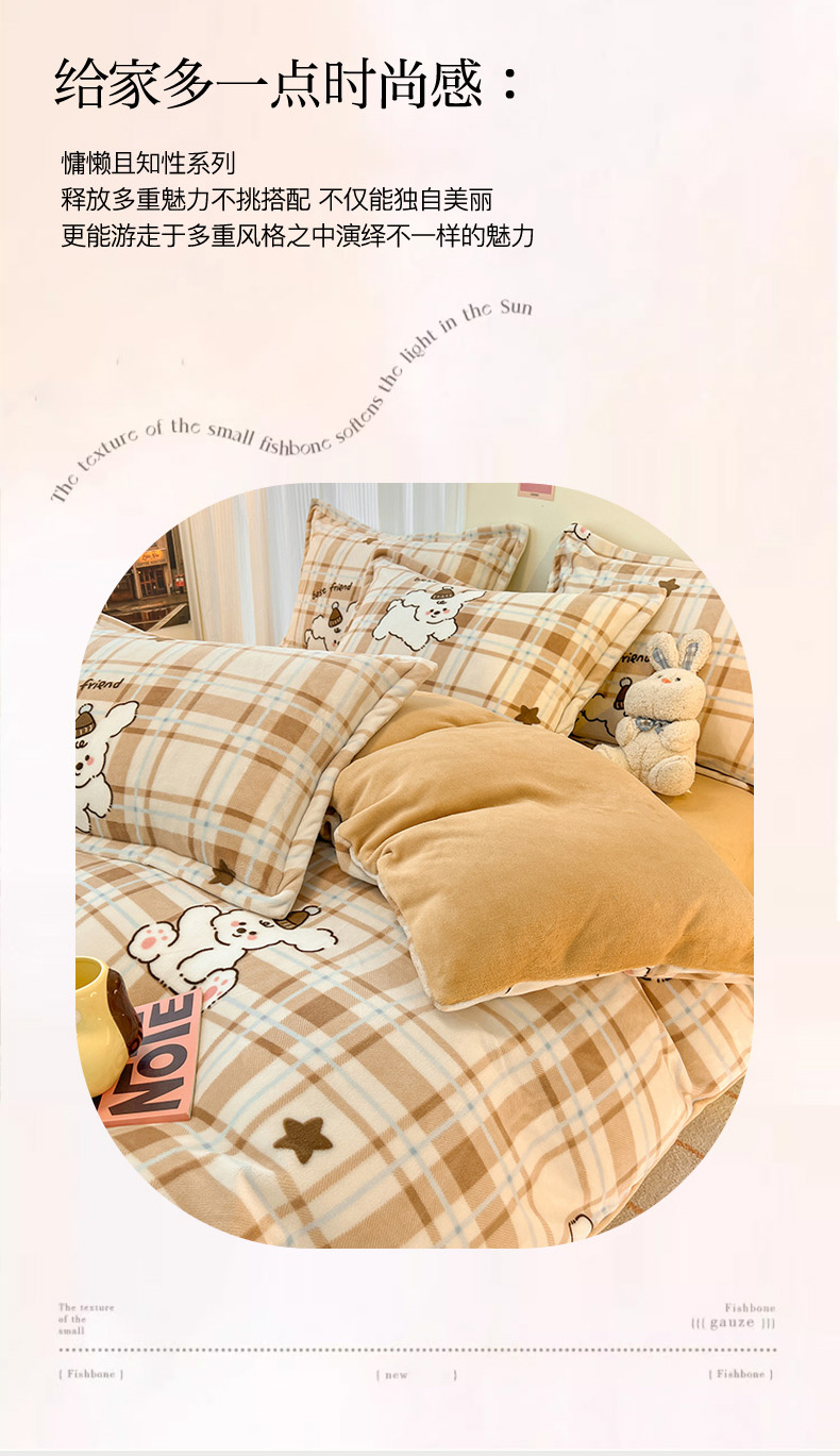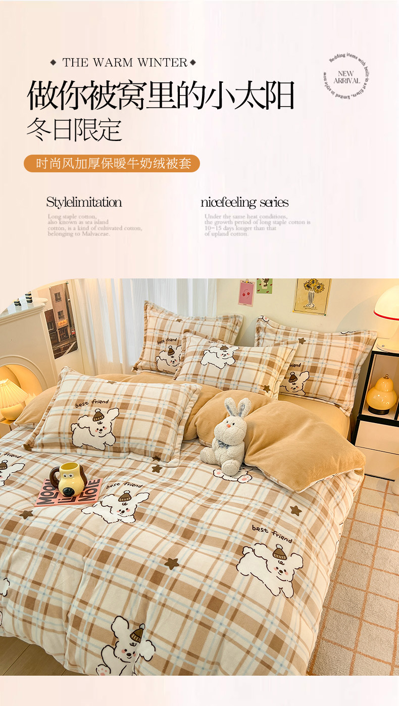 (总)倾慕家纺 2025新款卡通毛巾绣加厚保暖牛奶绒四件套,爱心女孩,咖啡小狗,猫咪熊兔,迷你小车,圣诞树熊,音乐企鹅