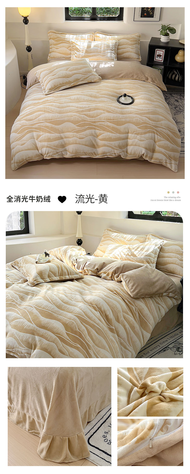 新印象 2025新款高克重牛奶绒烂花四件套雕花绒四件套流光-黄