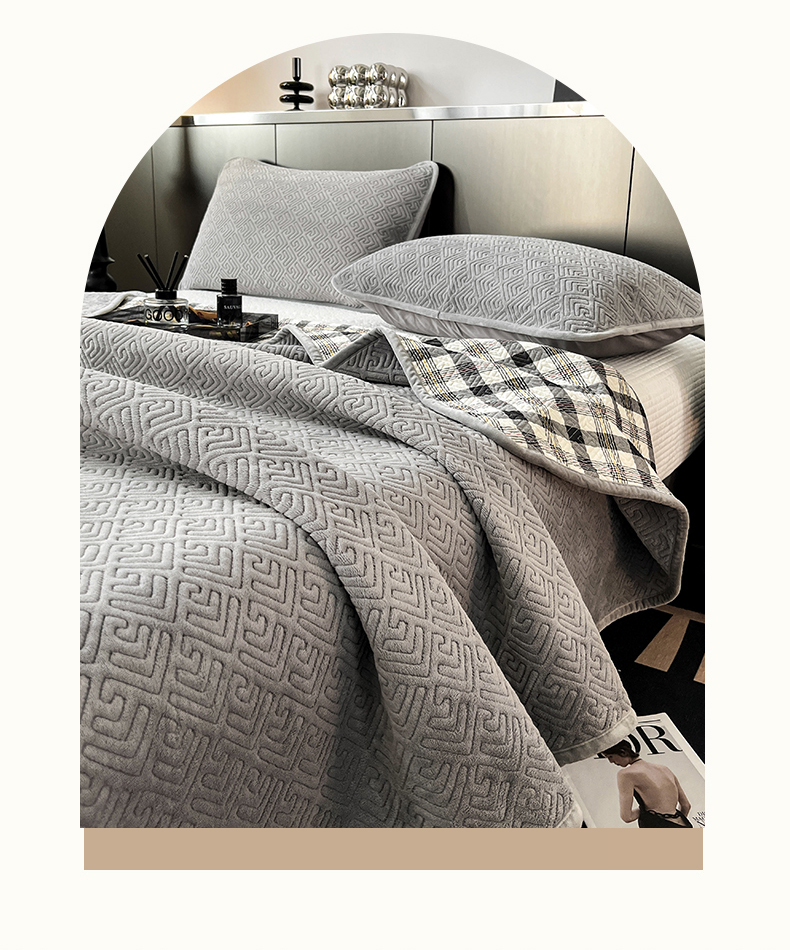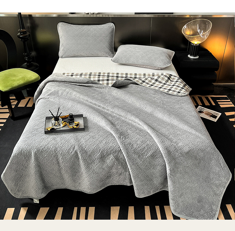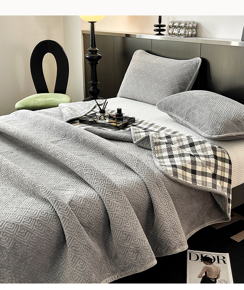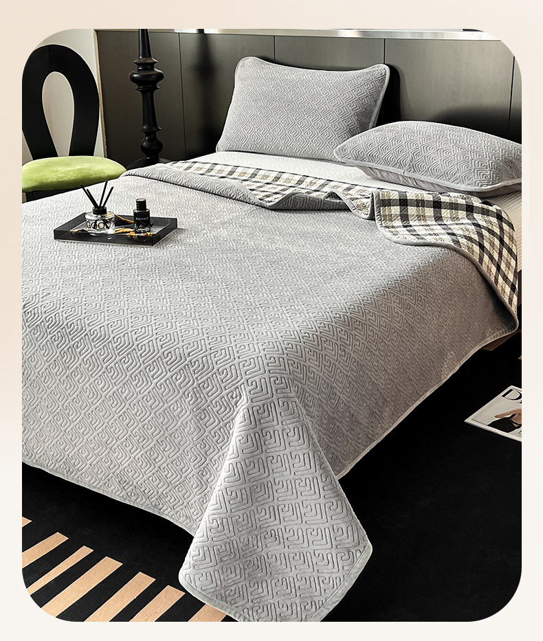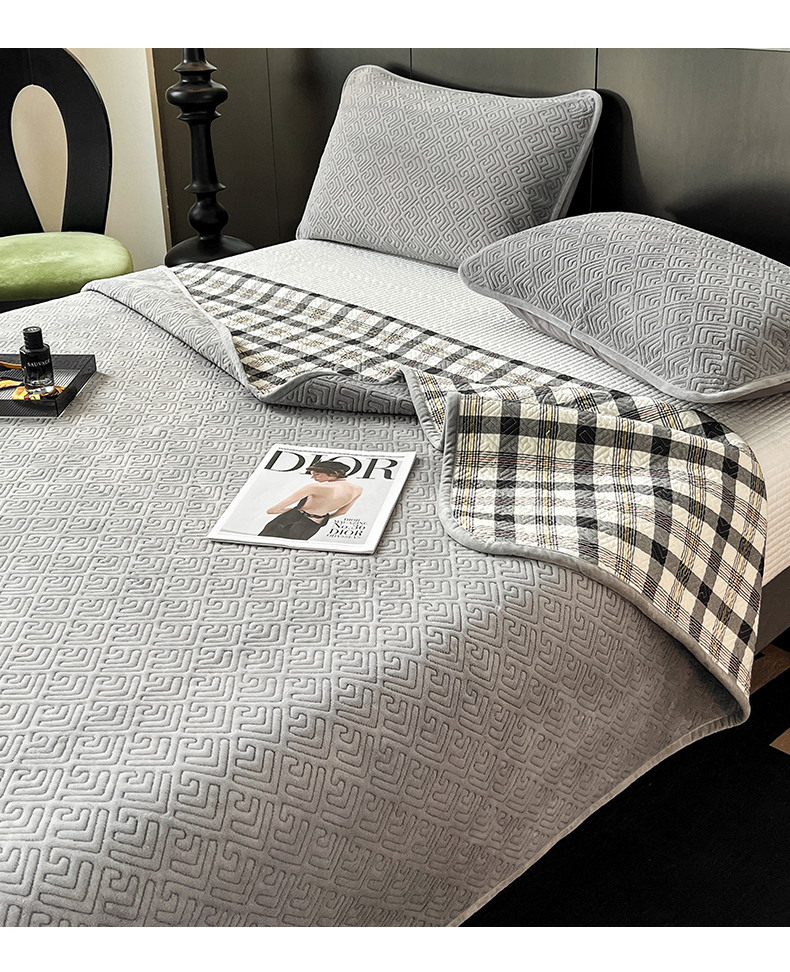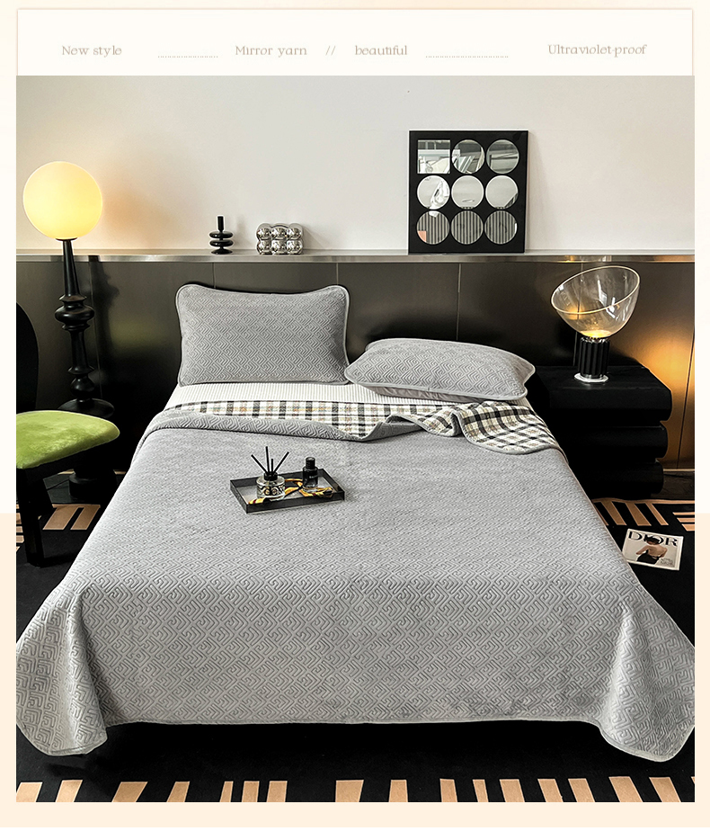 茉夕家纺 2024新款奶芙纯棉牛奶绒水洗床盖 奶芙-灰色