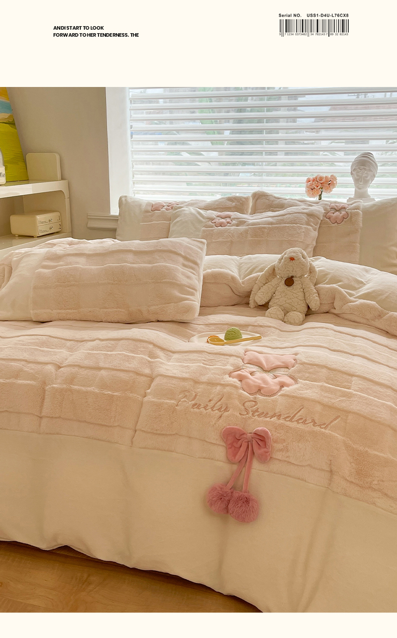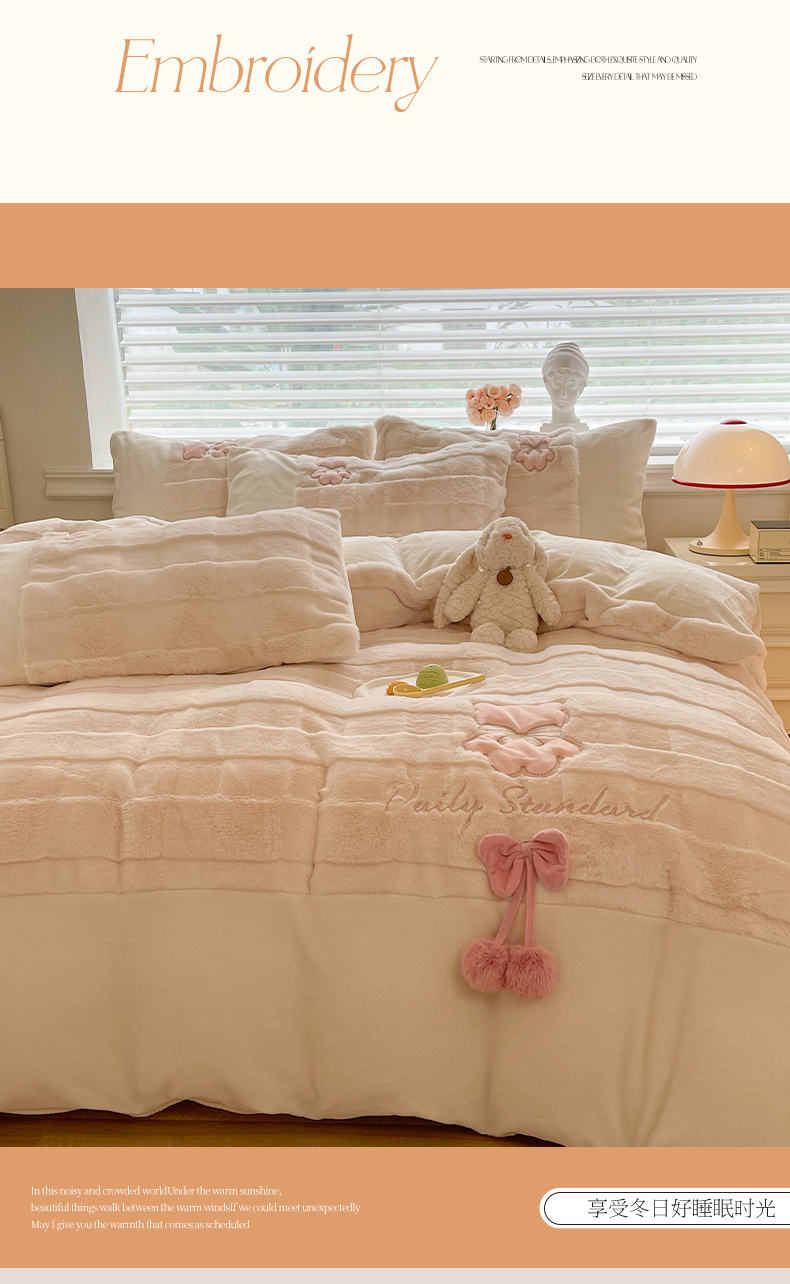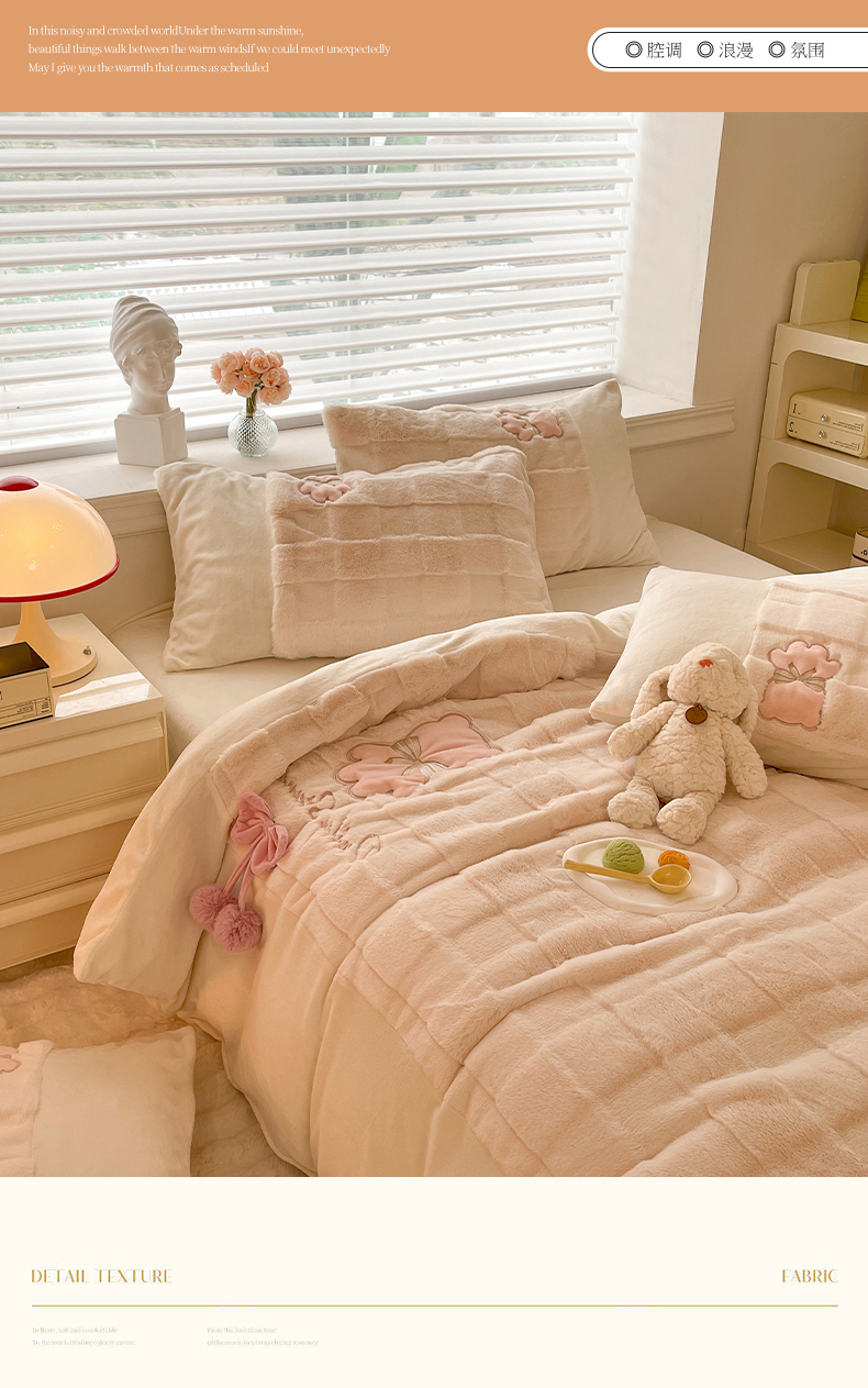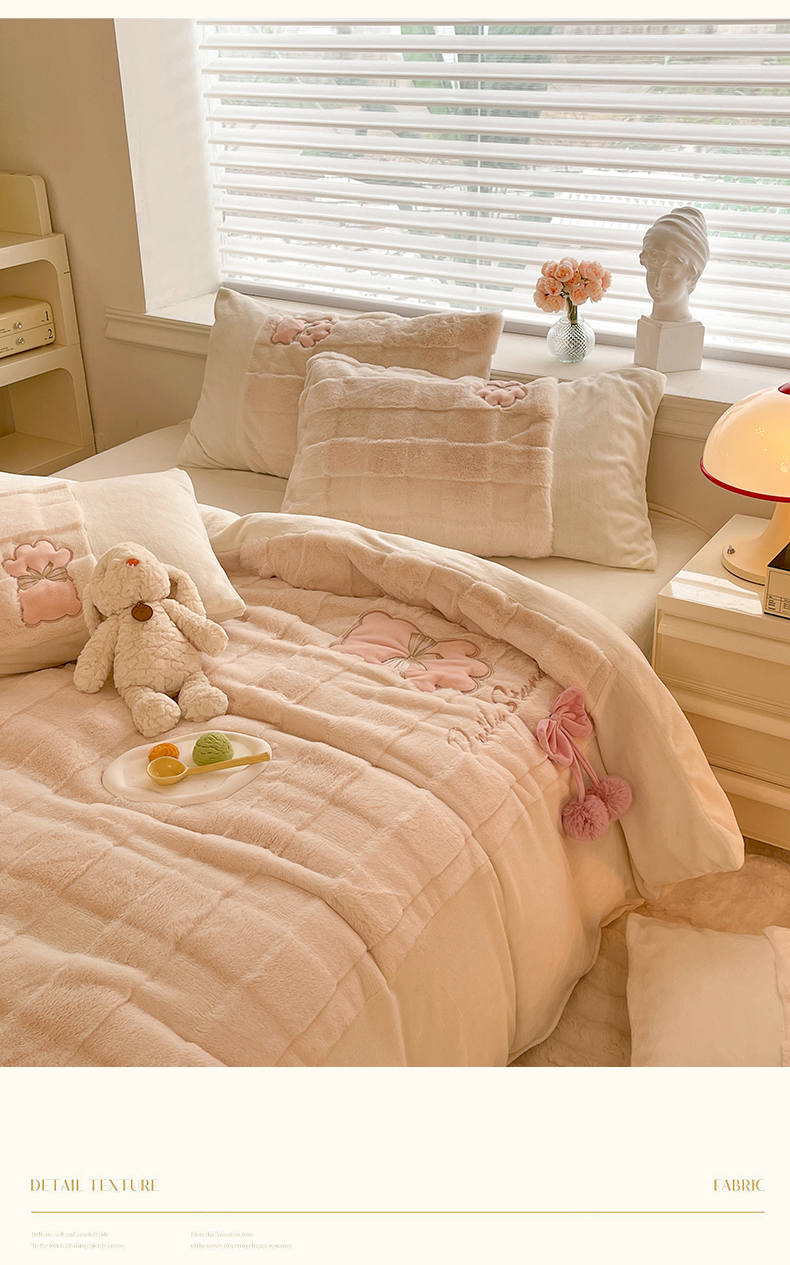 当前位置: 91家纺网 > 商品网购 > 床品套件 > 四件套 > 全棉普通四件套 > 绒棉世家 2025新款A类獭兔毛高端兔兔绒工艺款四件套-小熊系列 蝴蝶小熊-玉色