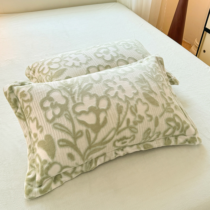 2025新款A类高克重牛奶绒着色烂花绒系列-单枕套 花满楼