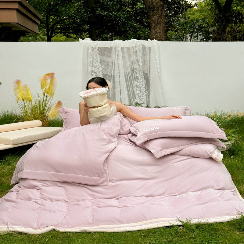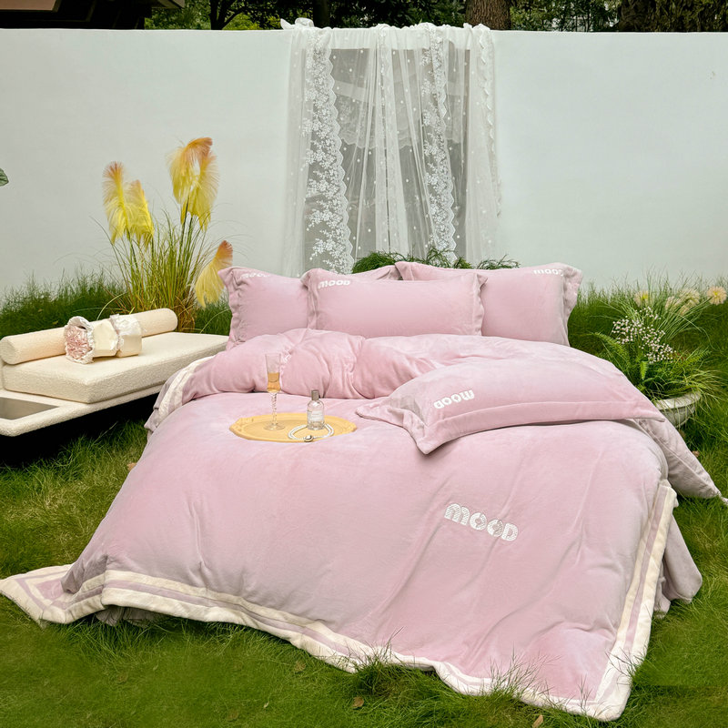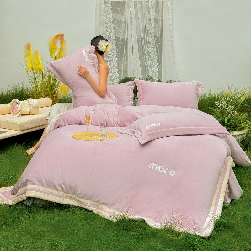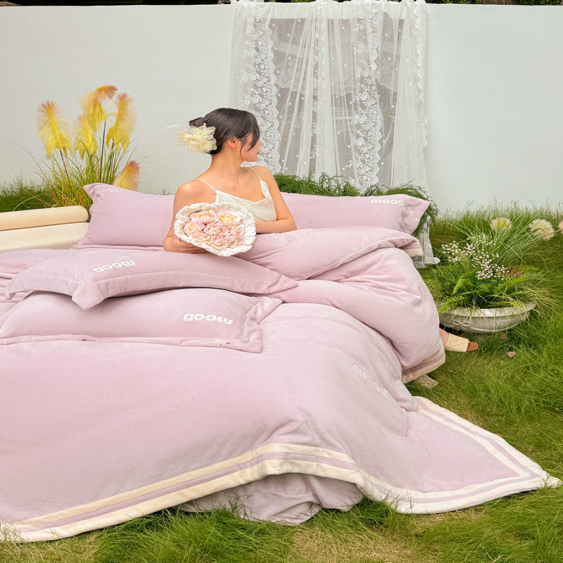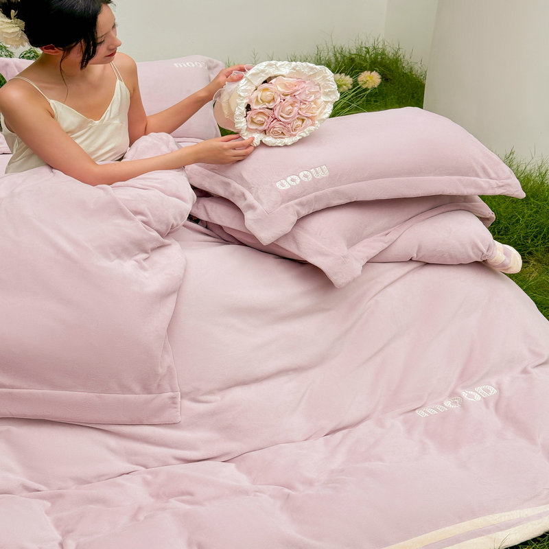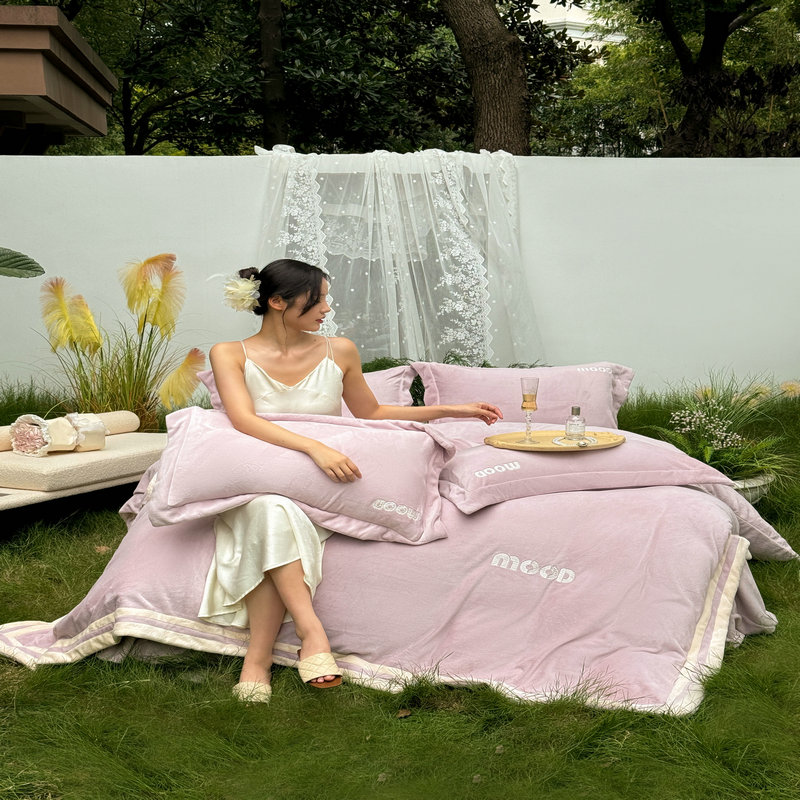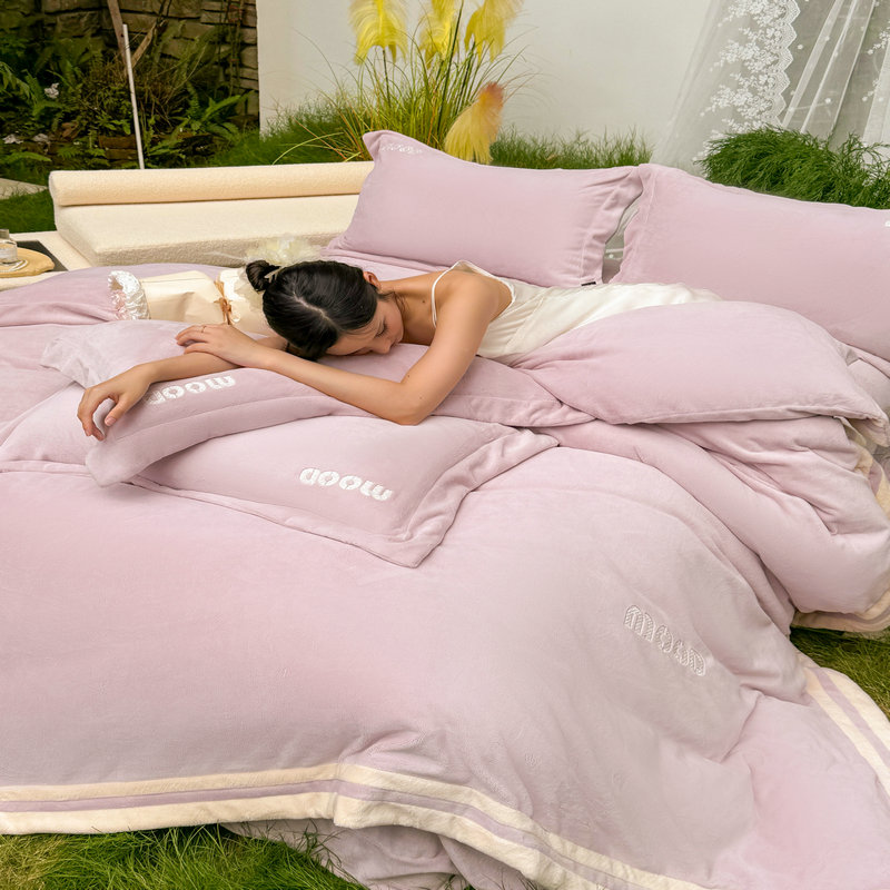 新月家纺(锦威郎) 2024新款高贵轻奢保暖牛奶绒四件套系列-摩登 粉紫