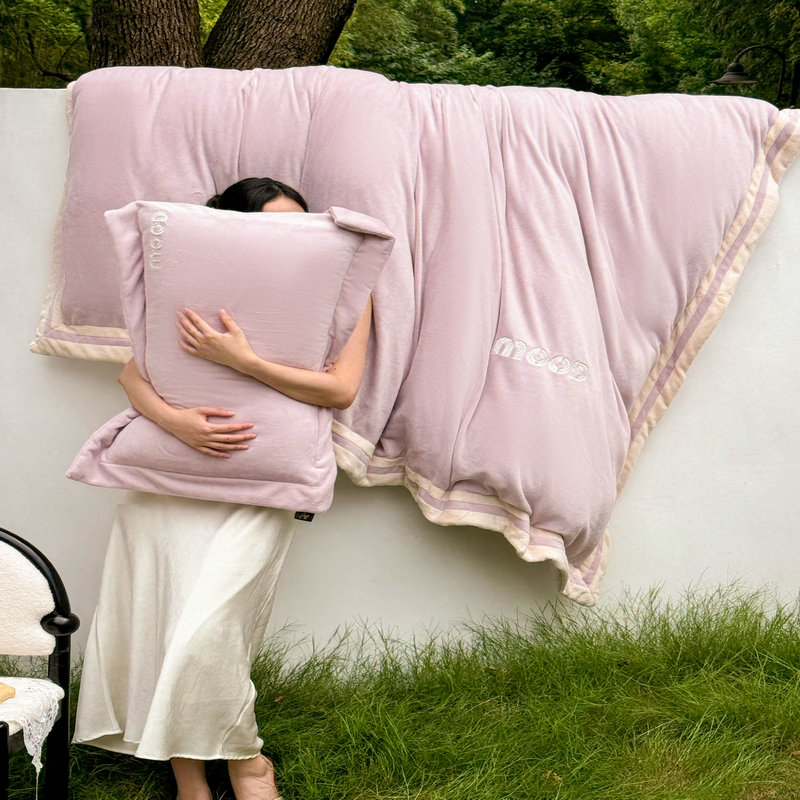 商品名称:新月家纺(锦威郎) 2024新款高贵轻奢保暖牛奶绒四件套系列-摩登 粉紫