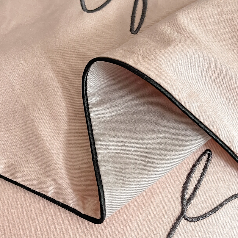 商品名称:法莱妮毛毯 2025新款轻奢13372喷气纯色百分百纯棉全棉刺绣麻绳四件套 玫瑰粉+浅灰