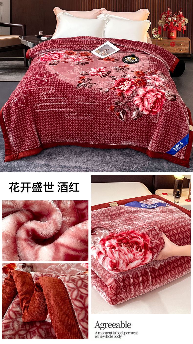 商品名称:凯轩毛毛毯毯子网销专供 2024新款花开盛世5D婚庆云毛毯毯子 花开盛世-酒红