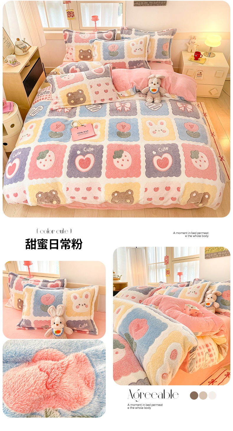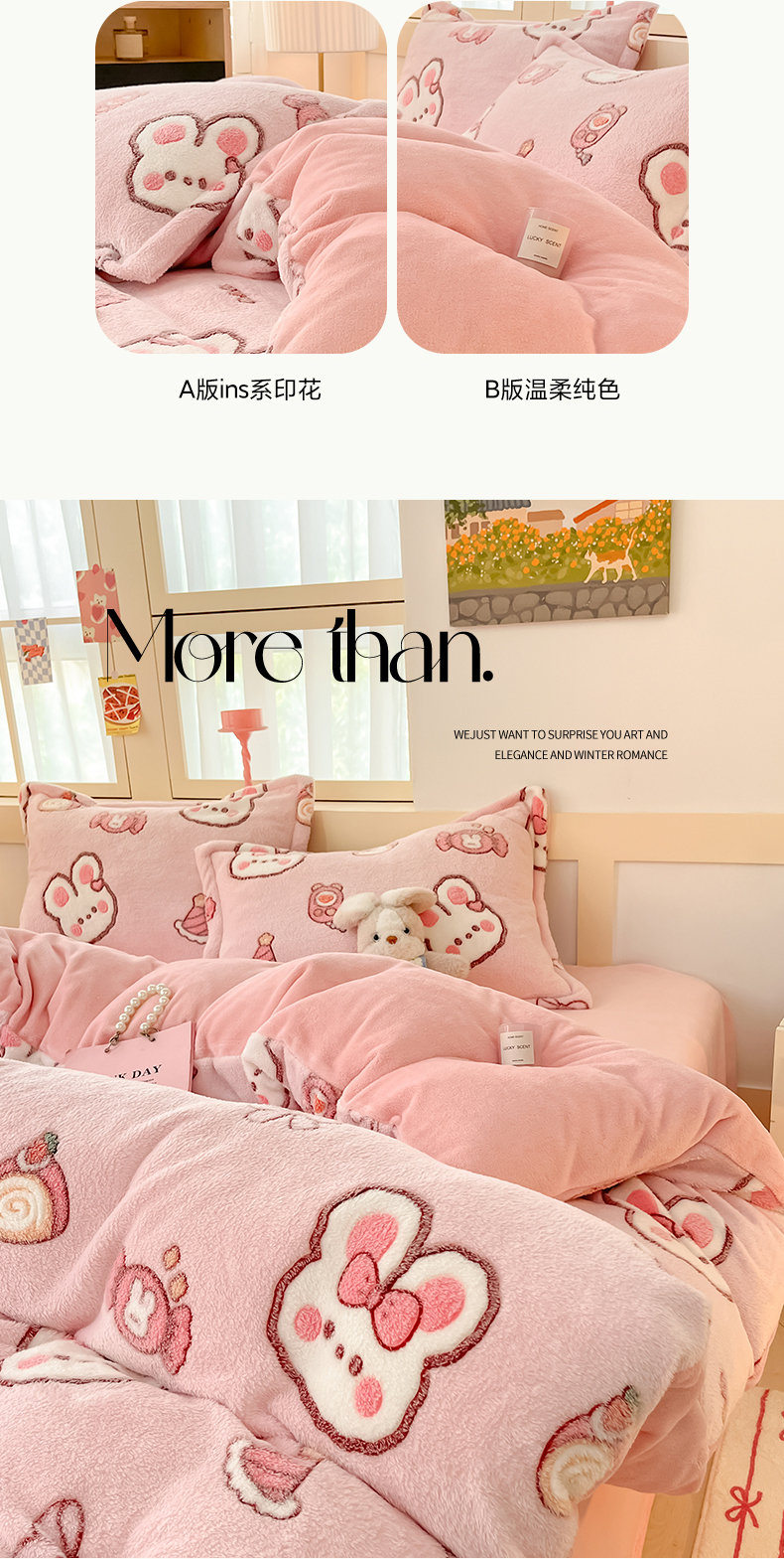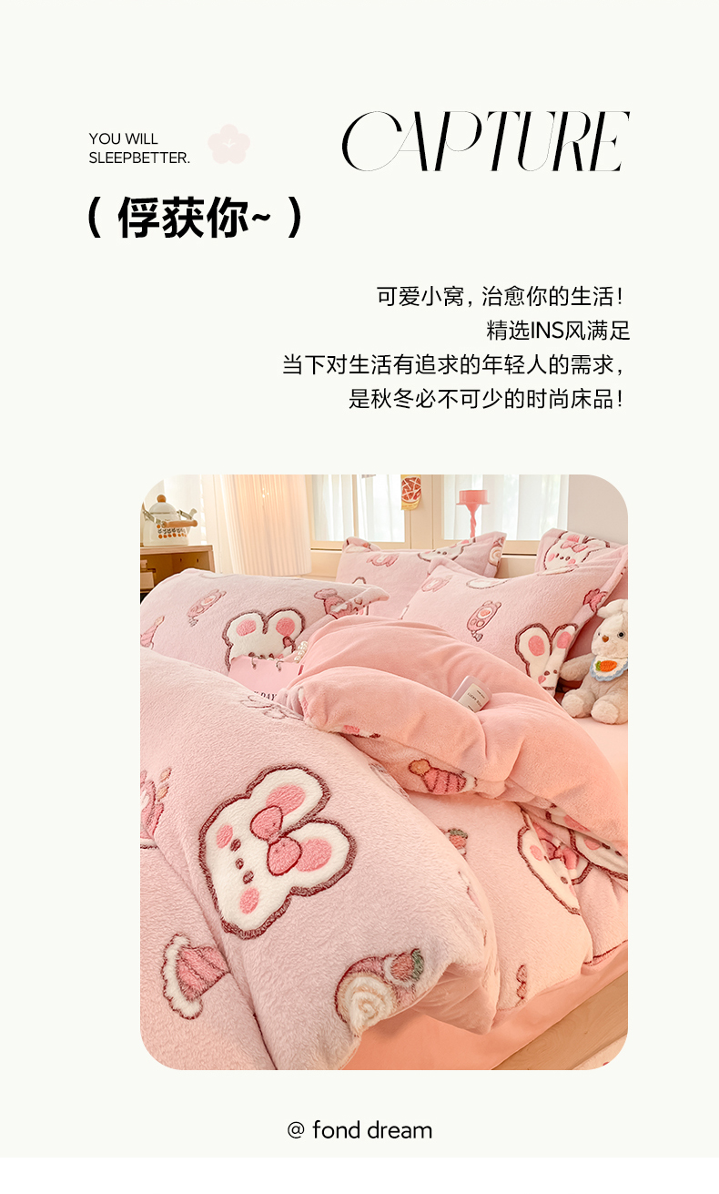 (总)川悦生活 2025新款立体雪花绒印花四件套学生床系列一场景一,ins樱桃,爱米兔,冰激凌小熊,波波熊,啵啵草莓,彩虹爱心粉,彩虹爱心蓝,彩虹爱语粉,彩虹爱语蓝,哒哒鸭丫,嘎嘎小熊,橘兔,可爱熊,可可小狗,快乐鸭鸭,蜜语奶兔,奶芙小花,奶咖小熊,奶味云朵,妮娜兔,巧克力熊,桃心爱语,甜蜜日常粉,甜系粉熊,甜系龙龙,小熊花园,幸福甜兔,熊小巴,郁金奶兔
