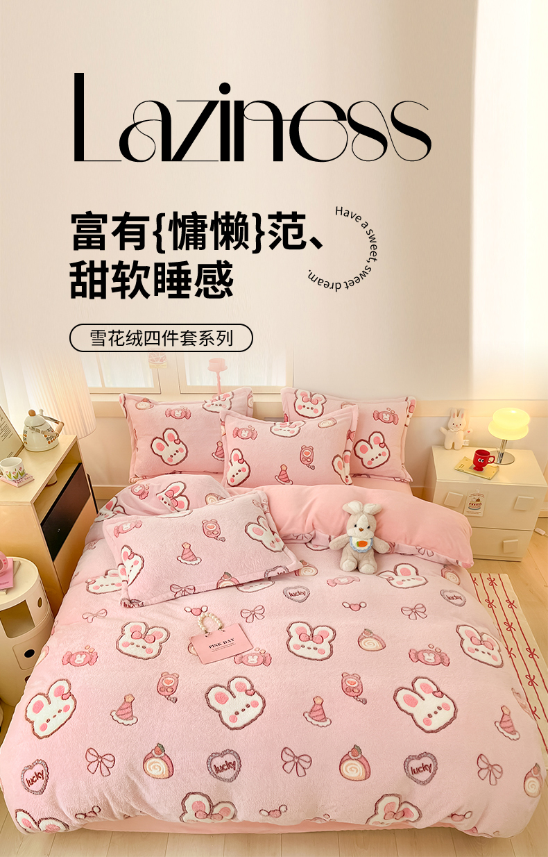(总)川悦生活 2025新款立体雪花绒印花大床四件套系列一场景一,爱米兔,冰激凌小熊,波波熊,彩虹爱心粉,彩虹爱心蓝,彩虹爱语粉,彩虹爱语蓝,藏蓝星语,哒哒鸭丫,嘎嘎小熊,花田米兔,花园蝴蝶,橘兔,可爱熊,快乐鸭鸭,蜜语奶兔,奶芙小花,奶咖小熊,奶味云朵,妮娜兔,泡芙小兔,巧克力熊,秋语-红豆,少女小兔,塔丽小熊猫,桃心爱语,甜蜜日常粉,甜系粉熊,甜系龙龙,甜心花田,小狗物语,小熊花园,小雪狗,小郁金,幸福甜兔,熊小巴,樱桃啵啵,郁金奶兔,云朵奶狗,ins樱桃,lucky熊猫