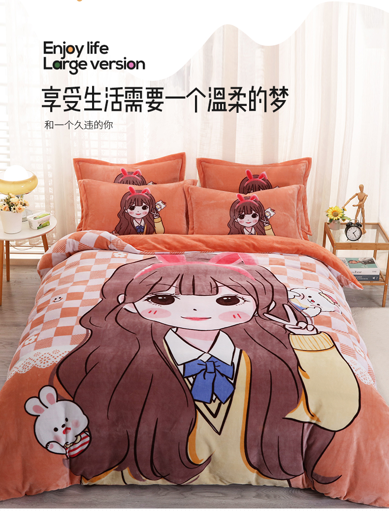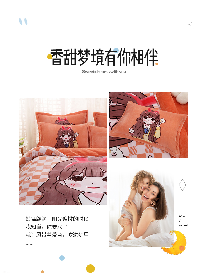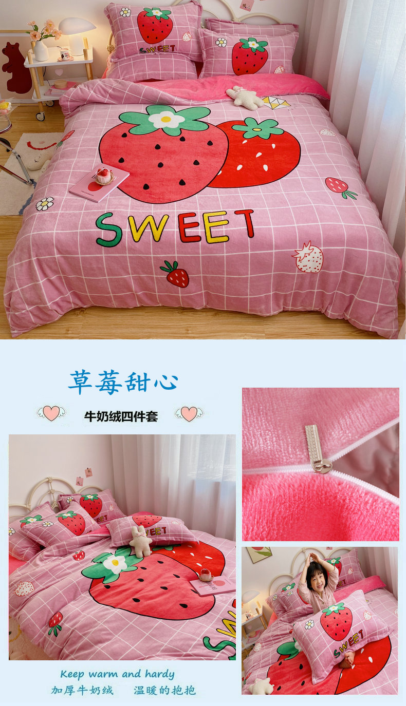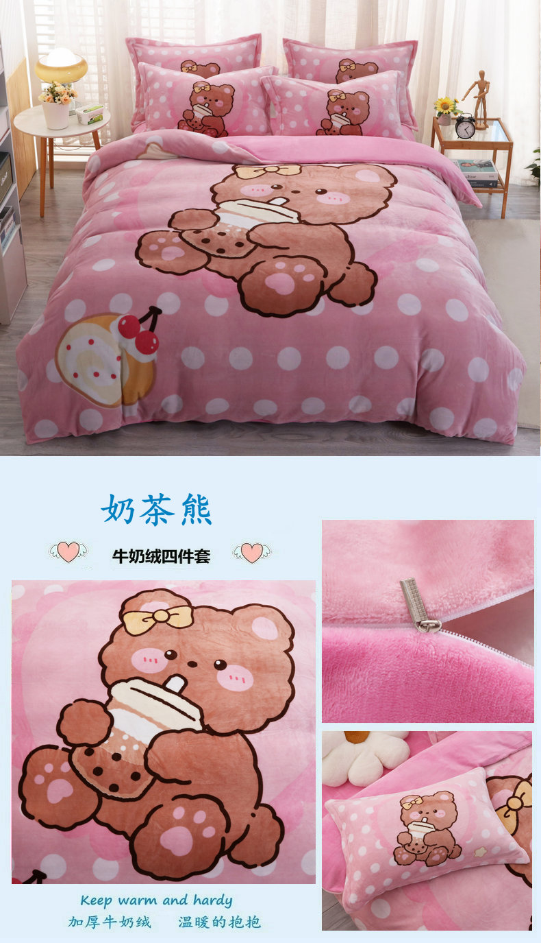 当前位置: 91家纺网 > 商品网购 > 床品套件 > 四件套 > 牛奶绒四件套 > 宝薇 2024新款加厚牛奶绒大版卡通四件套 小甜心