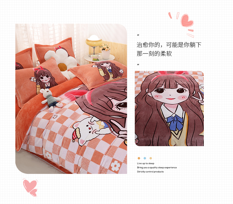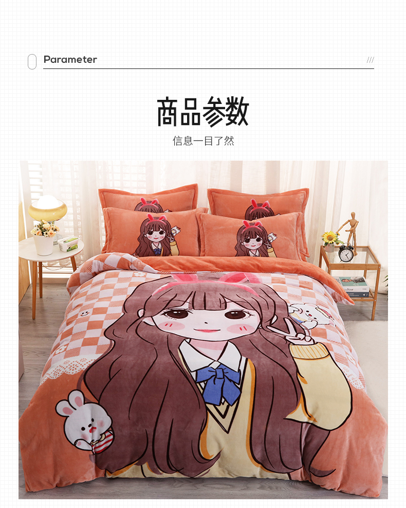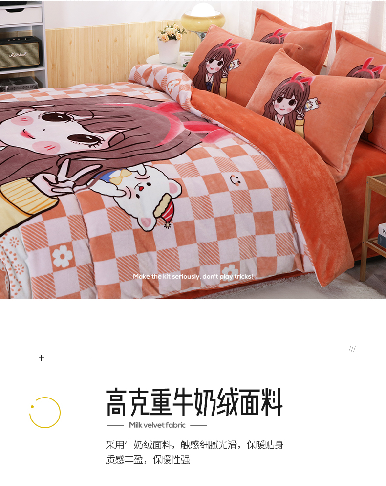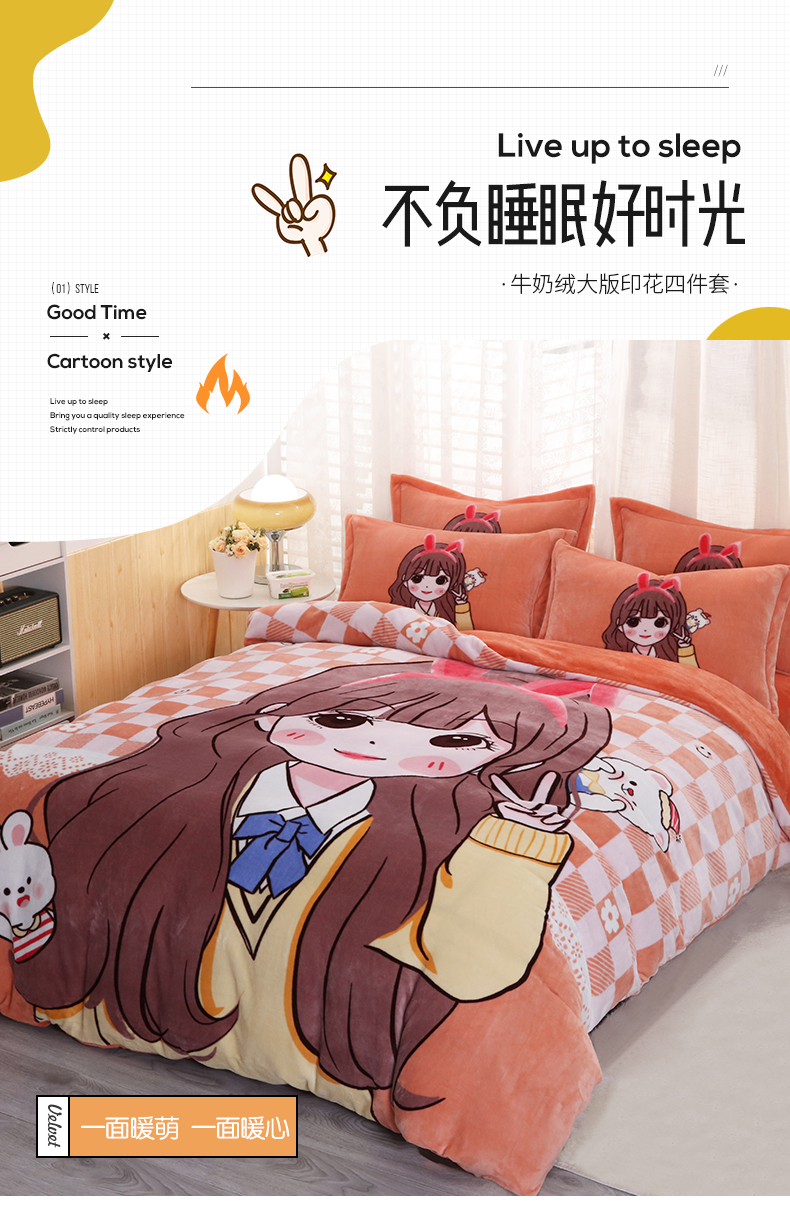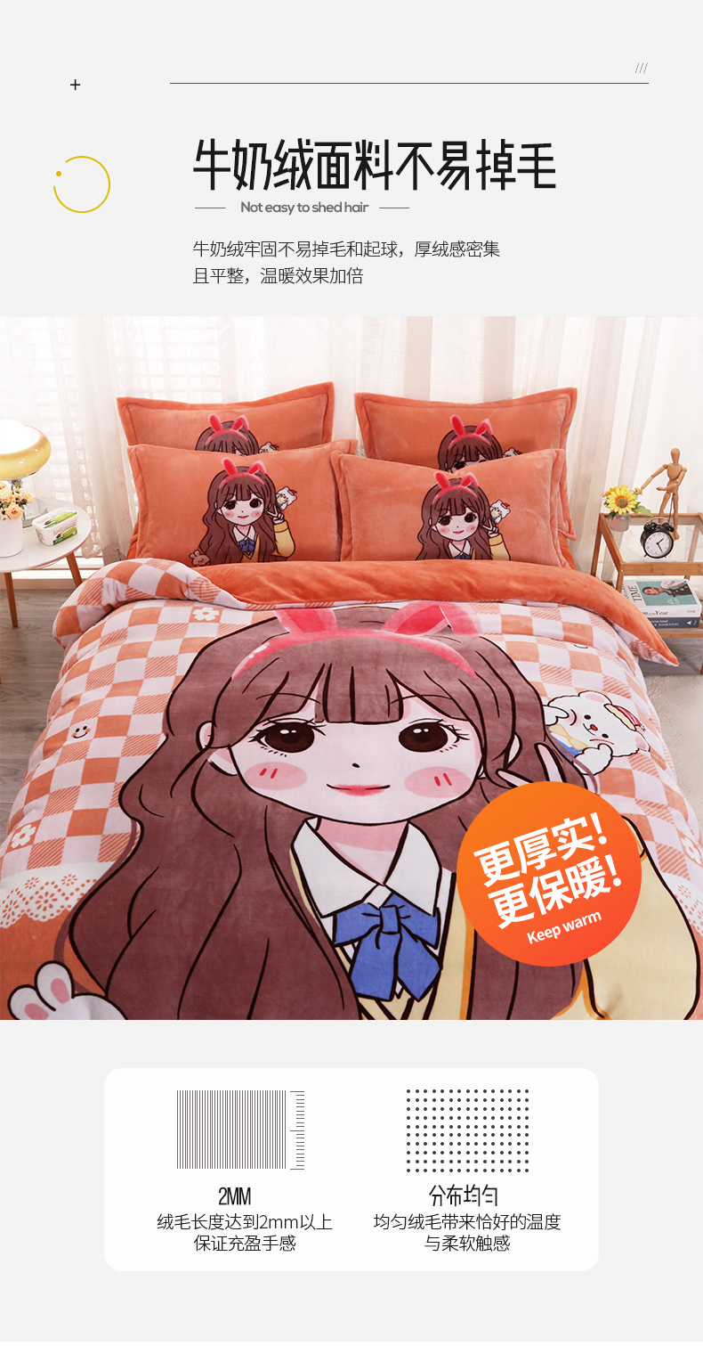 当前位置: 91家纺网 > 商品网购 > 床品套件 > 四件套 > 牛奶绒四件套 > 宝薇 2024新款加厚牛奶绒大版卡通四件套 小甜心