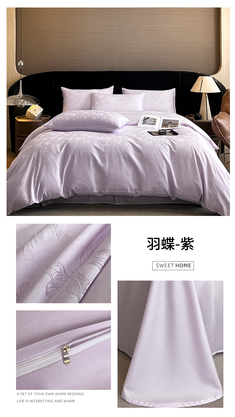 蓝米卡夫 2024新保暖-秋冬A类兰精天丝棉磨毛大提花四件套(礼盒包装) 羽蝶-紫