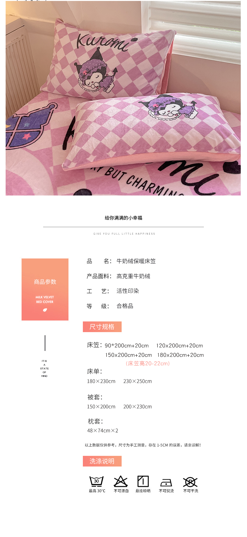 当前位置: 91家纺网 > 商品网购 > 床上用品 > 床笠 > 金爱家 2024新款大阪单品牛奶绒床笠 绒-D晚安库洛米