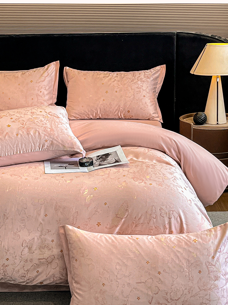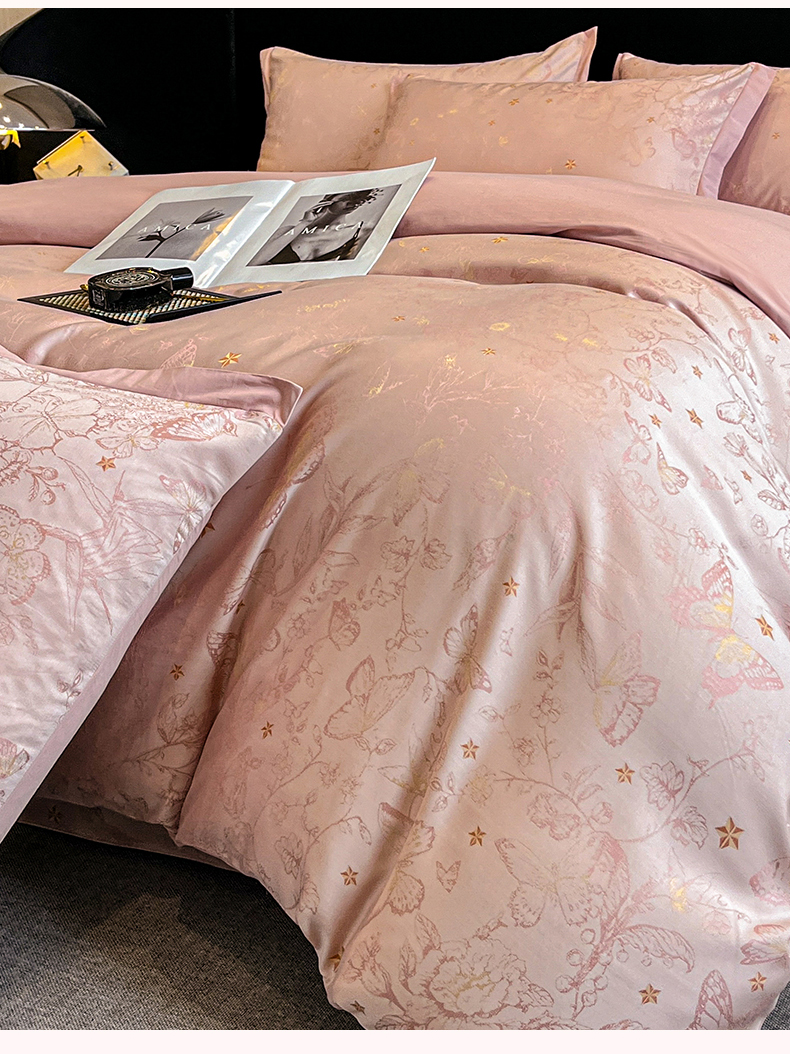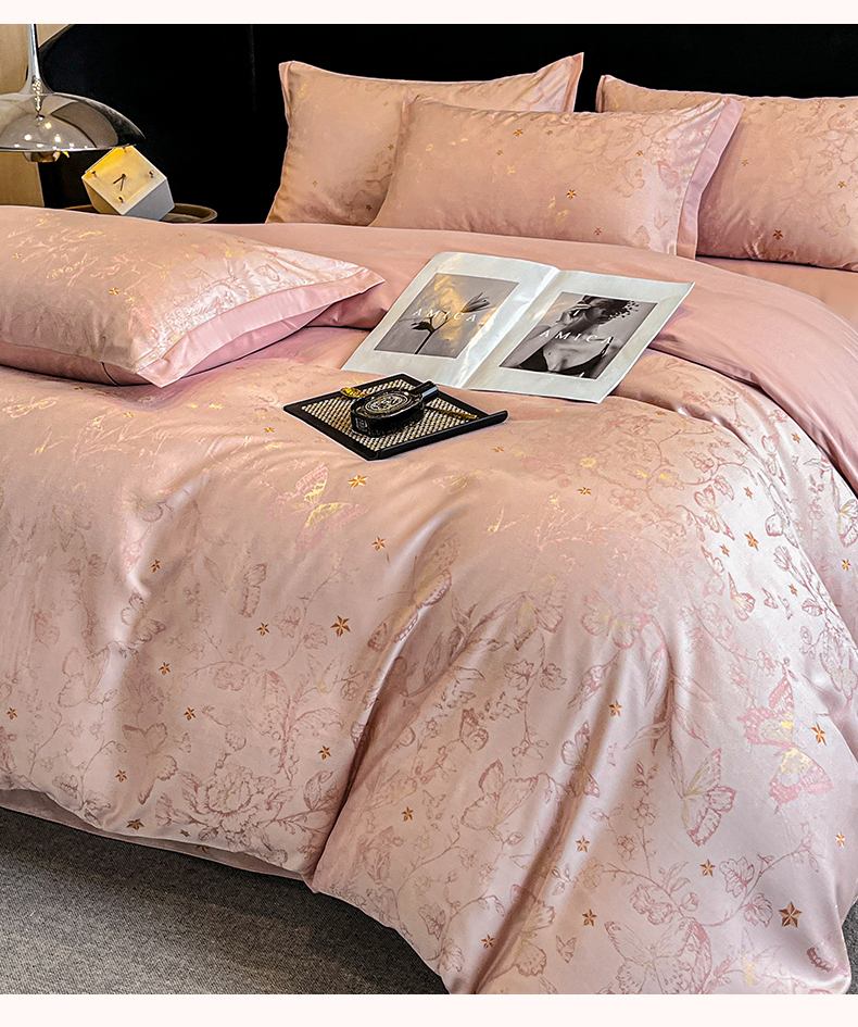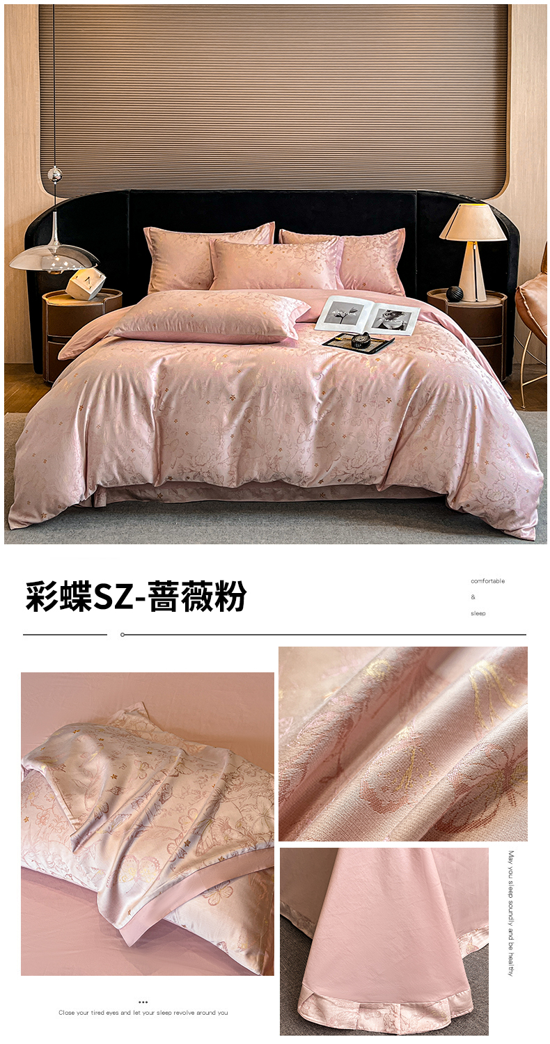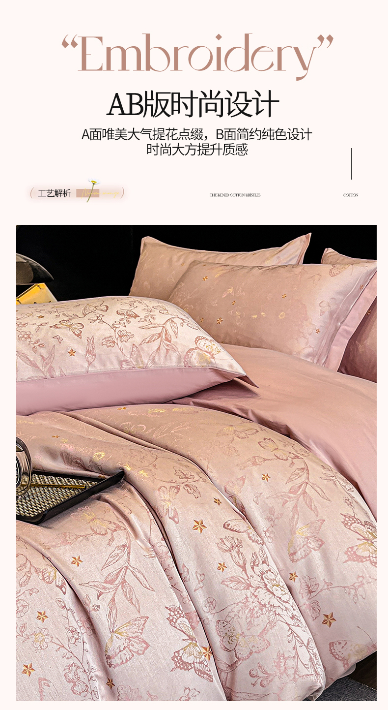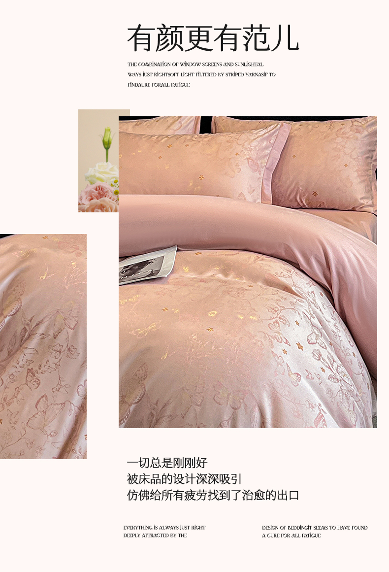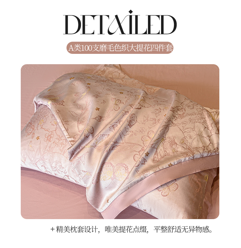 商品名称:蓝米卡夫 2024新保暖-秋冬A类100支磨毛色织大提花-彩蝶系列(礼盒包装) 彩蝶SZ-蔷薇粉