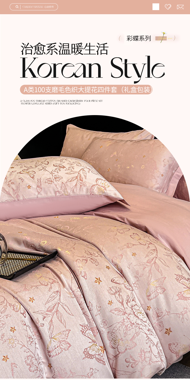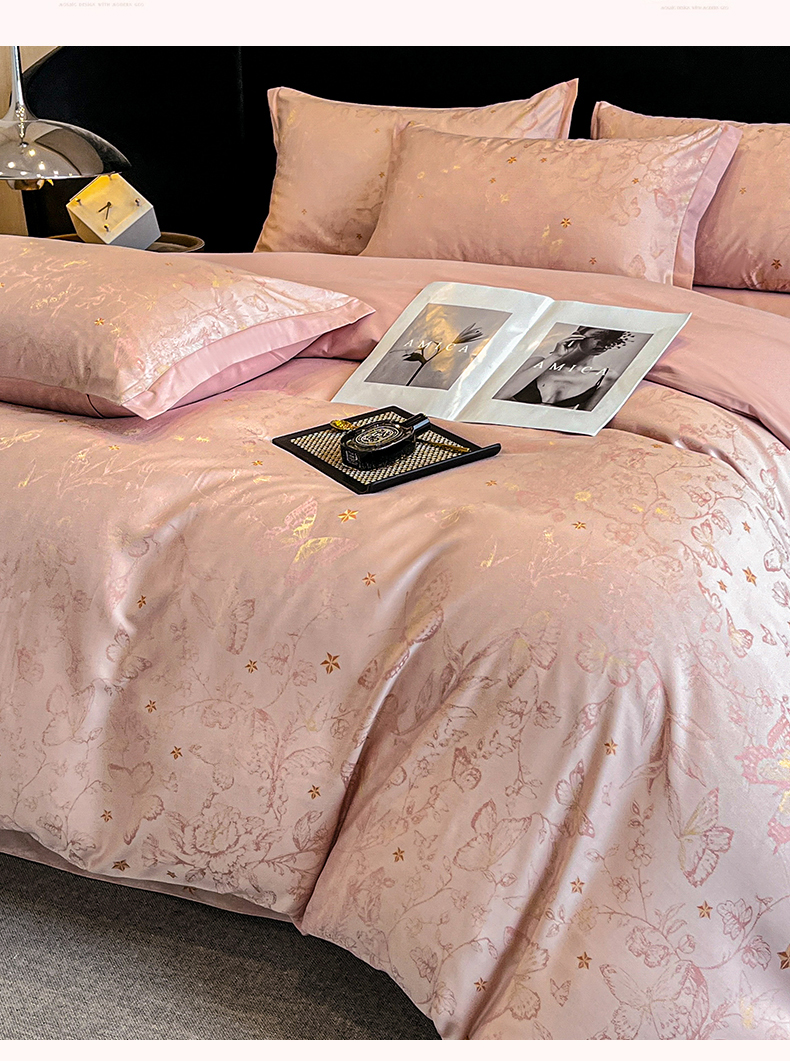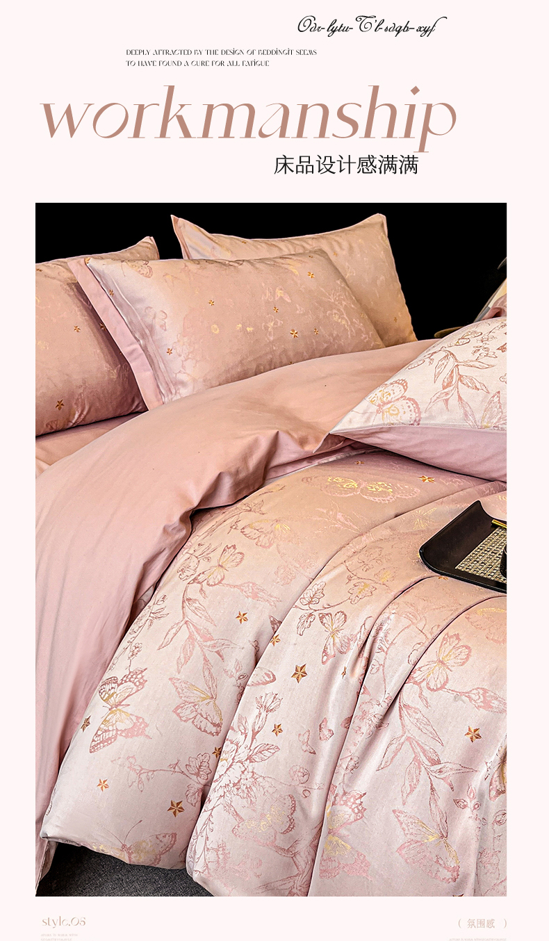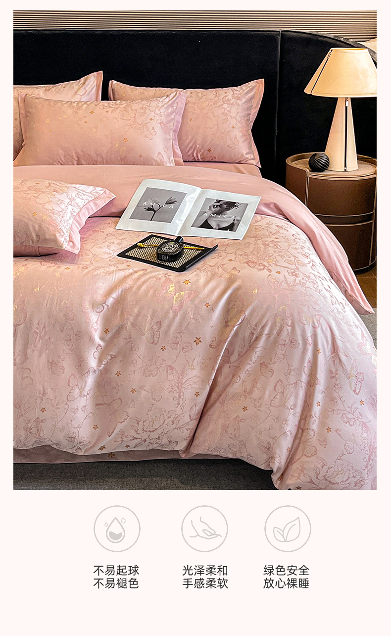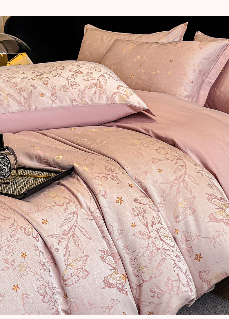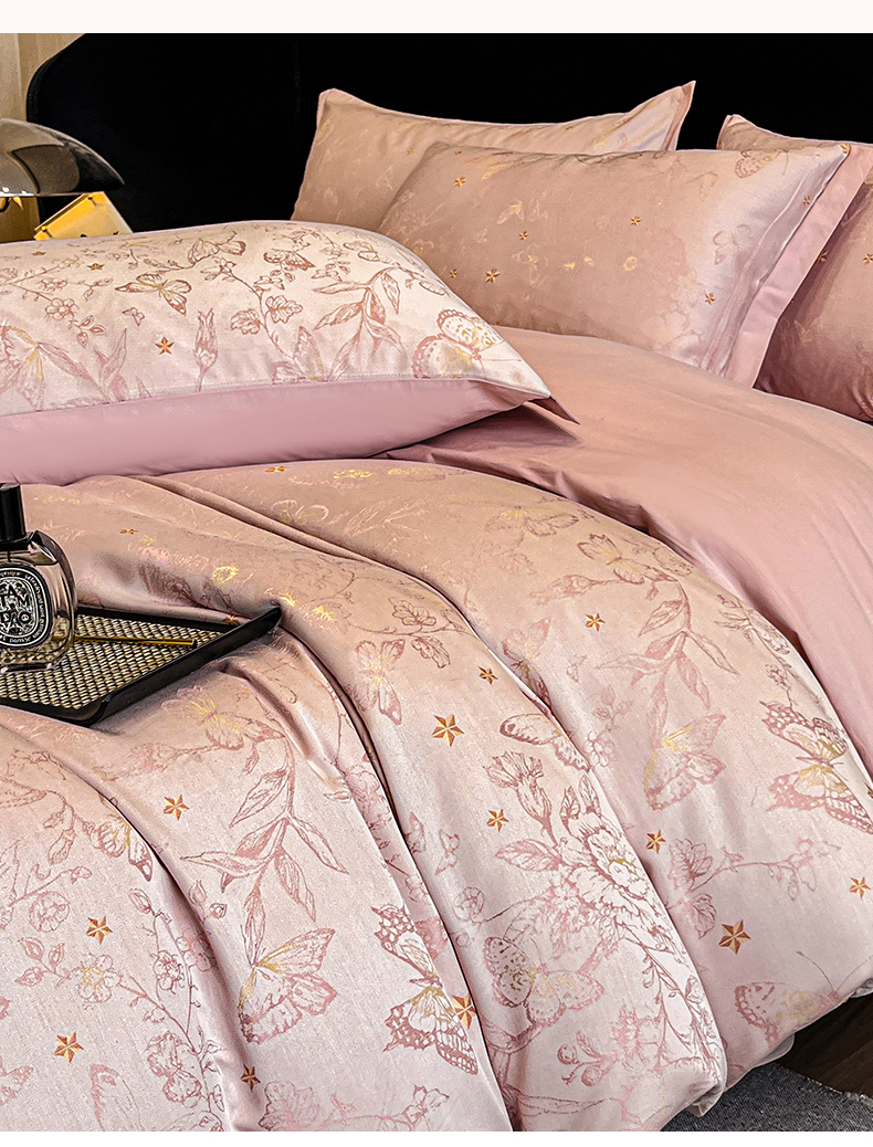 商品名称:蓝米卡夫 2024新保暖-秋冬A类100支磨毛色织大提花-彩蝶系列(礼盒包装) 彩蝶SZ-蔷薇粉