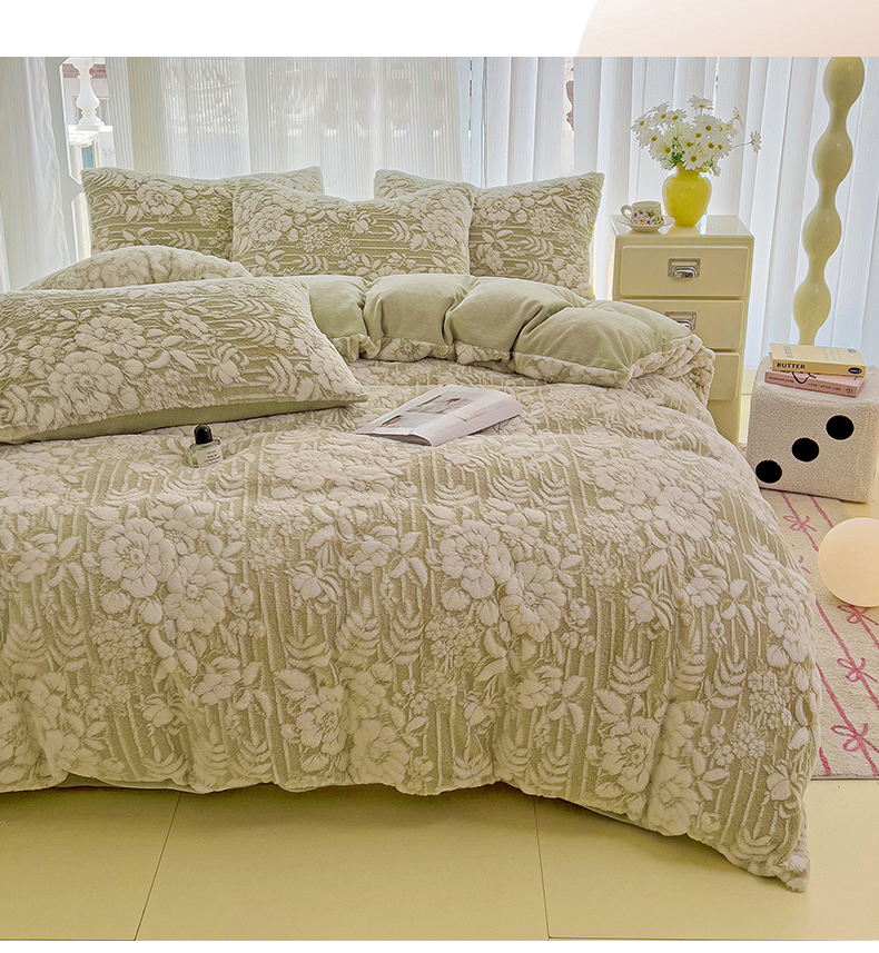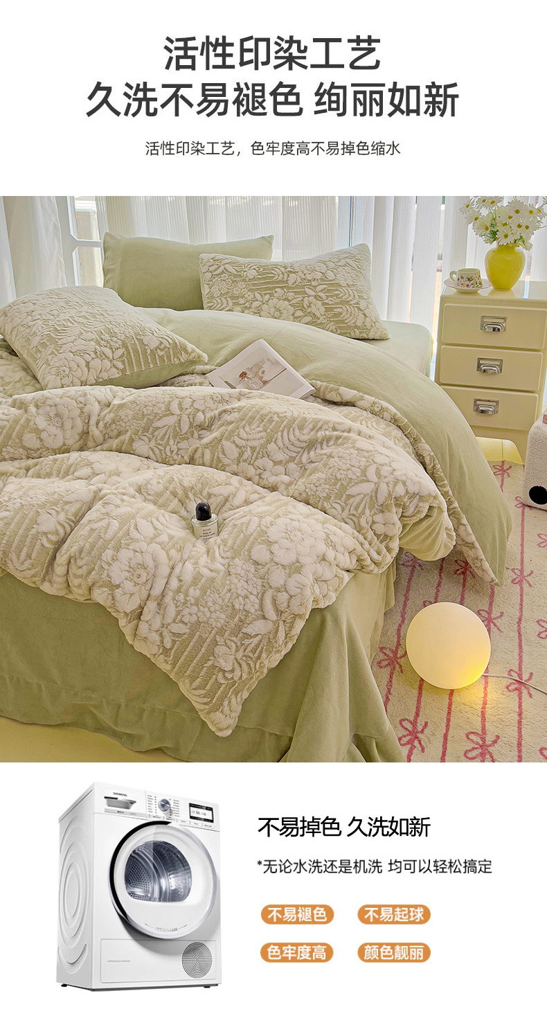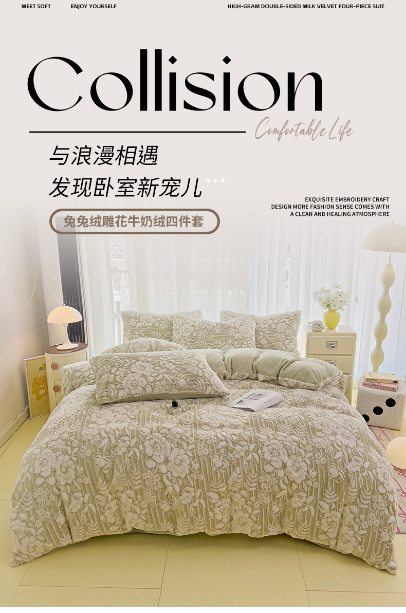 忆生活 2024新款兔兔绒雕花牛奶绒四件套 春晓