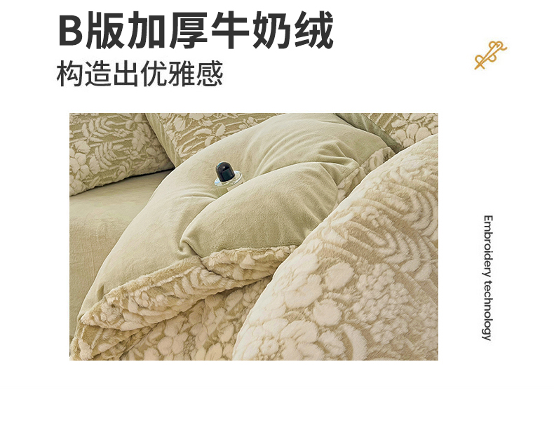 (总)忆生活家纺 2025秋冬韩版公主风雕花牛奶绒四件套-小香茶花系列,小香茶花-杏仁粉,小香茶花-帛紫,小香茶花-秋绿,小香茶花-象牙白