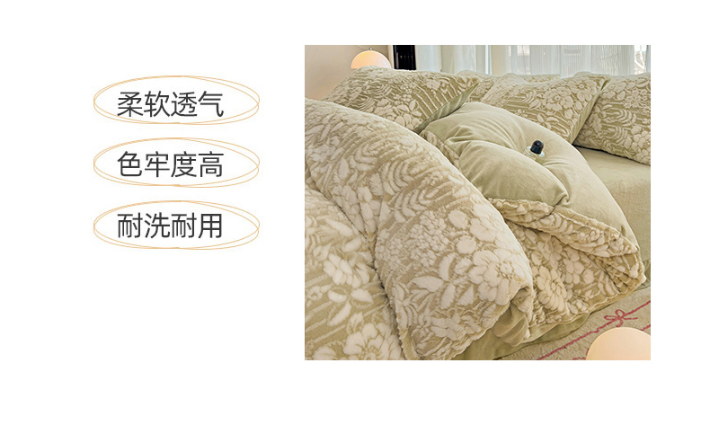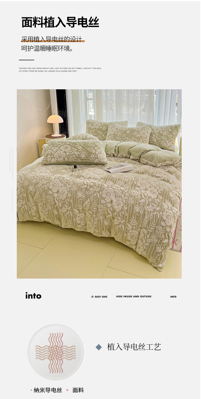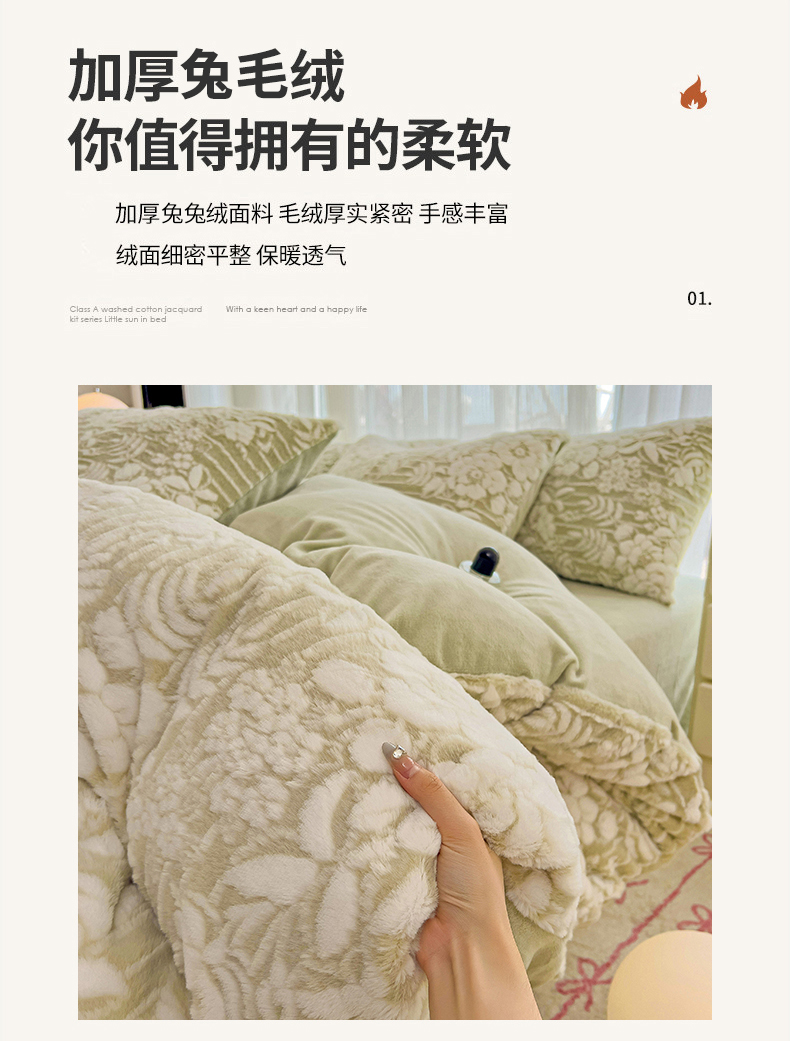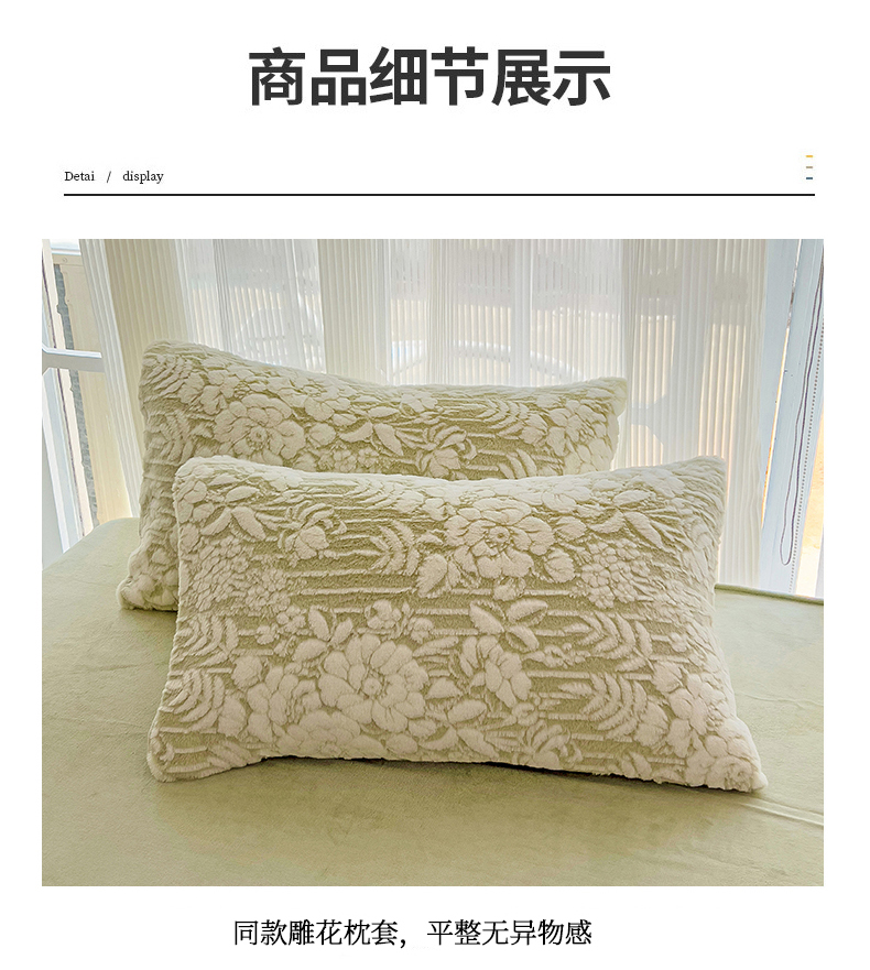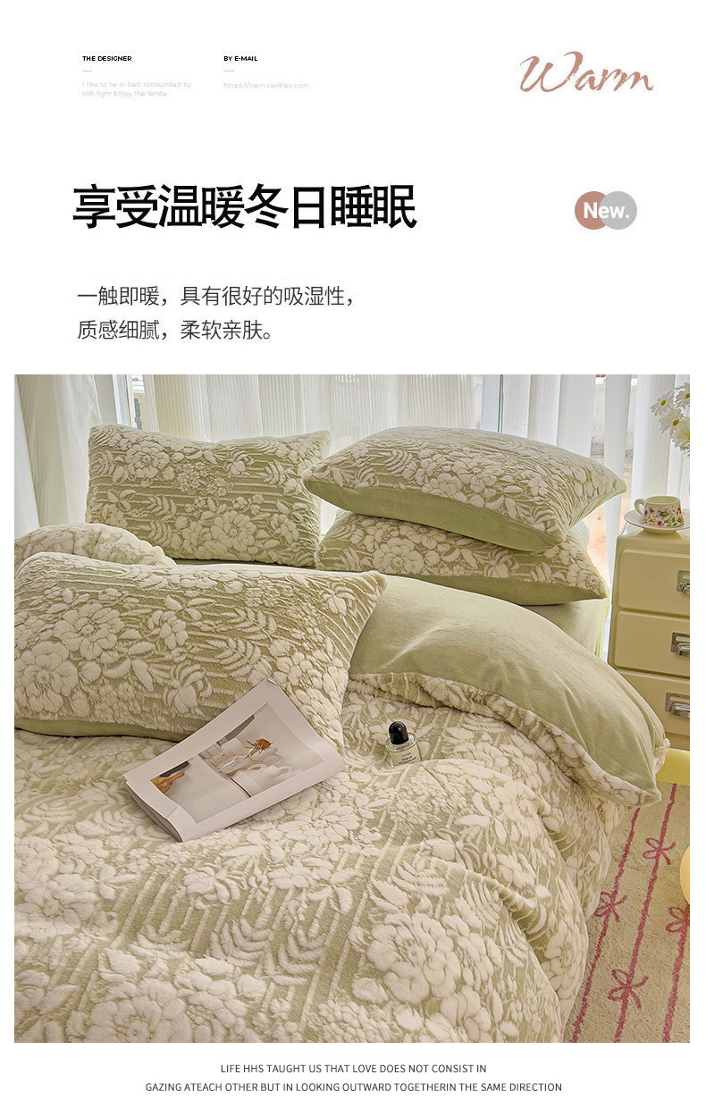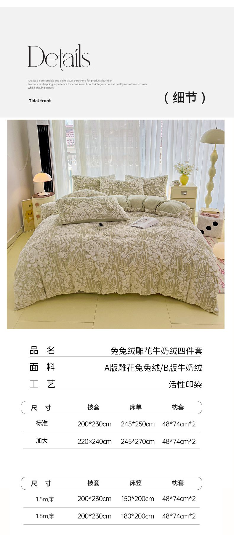 商品名称:忆生活 2024新款兔兔绒雕花牛奶绒四件套 春晓