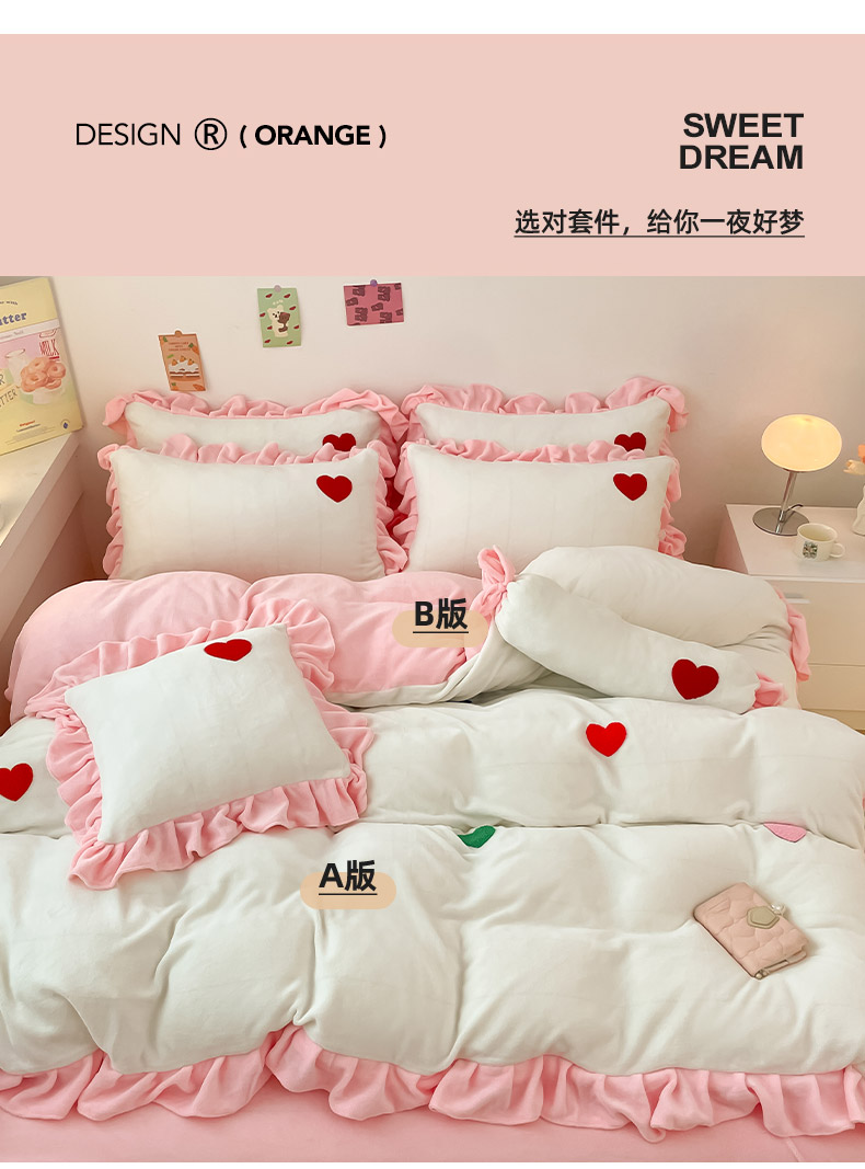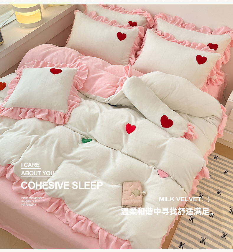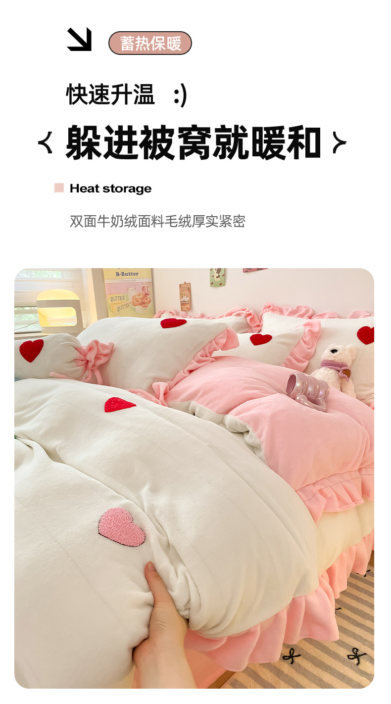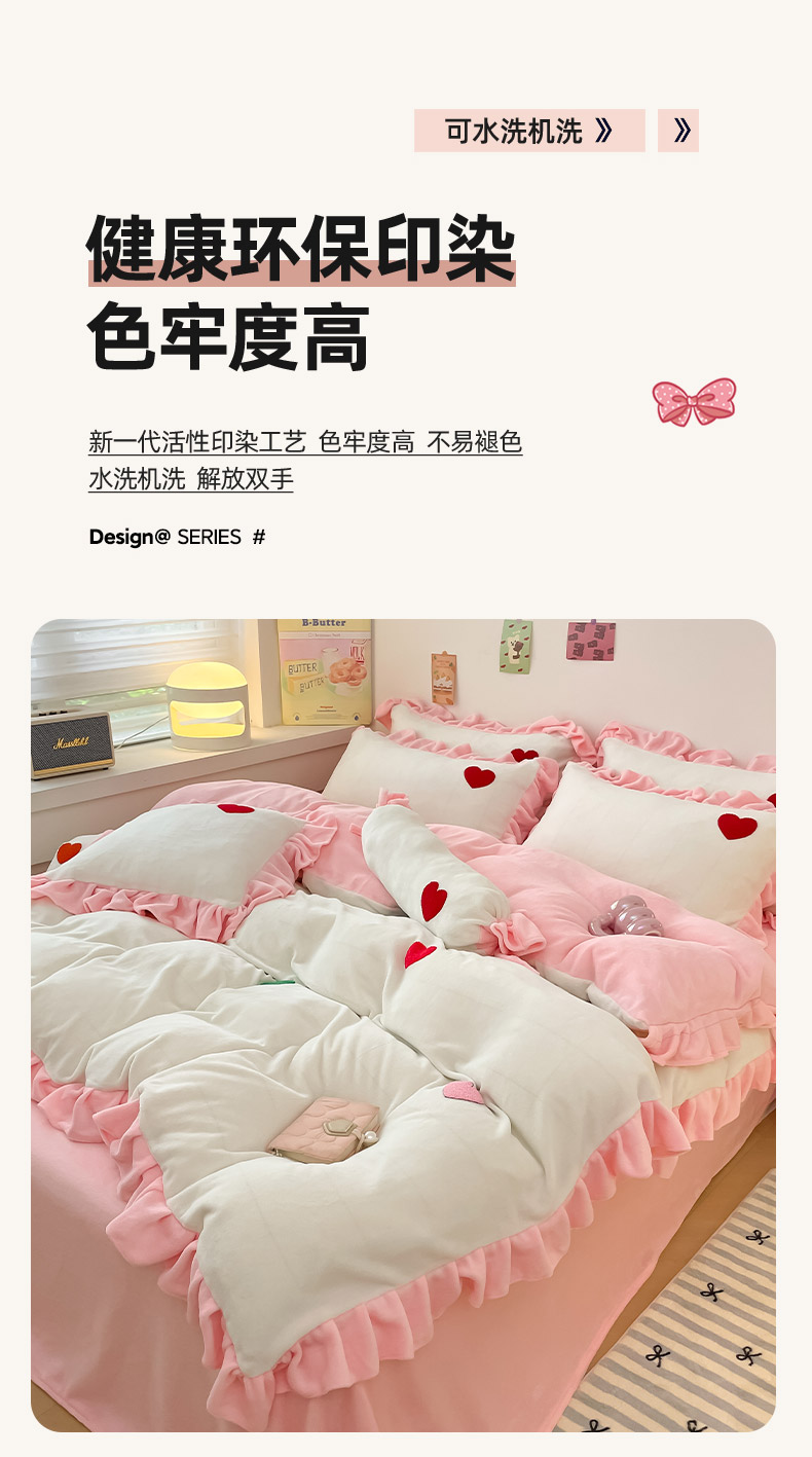 商品名称:丝印良品 2024秋冬韩版公主风牛奶绒四件套 爱心