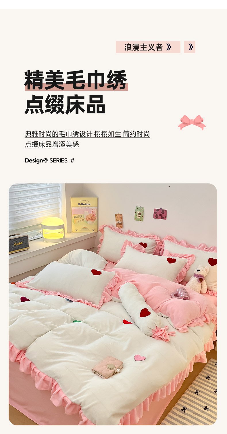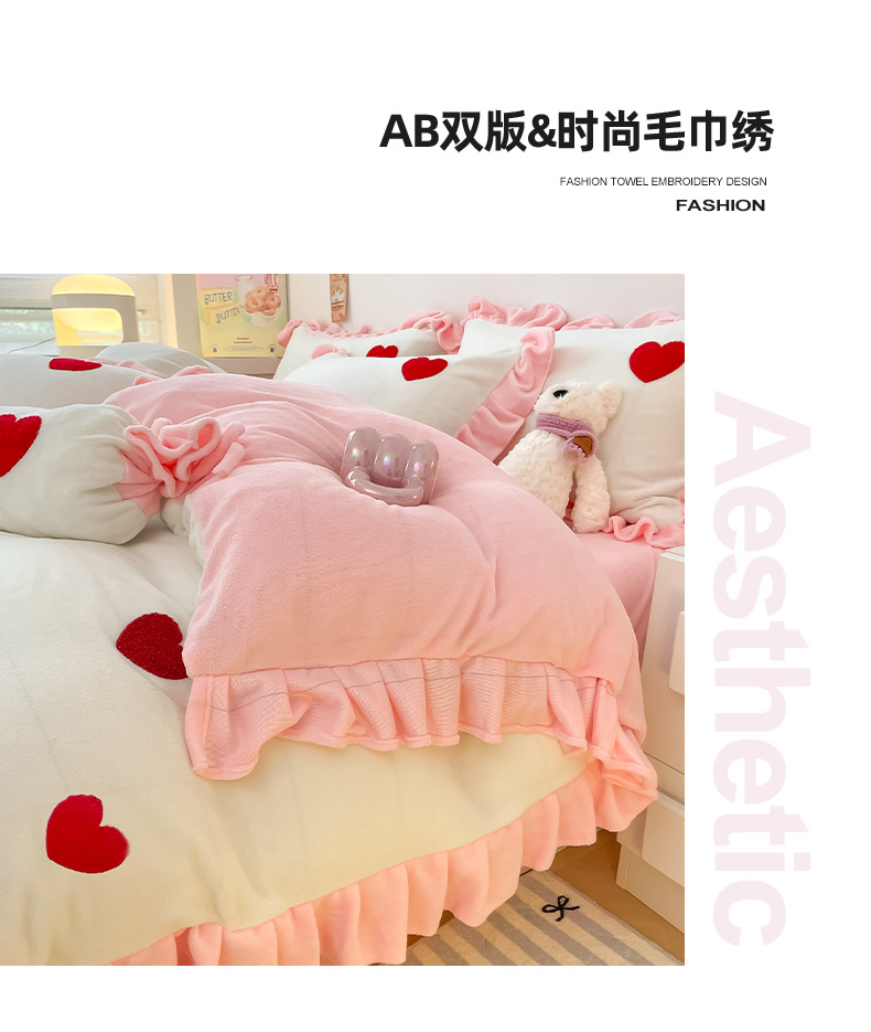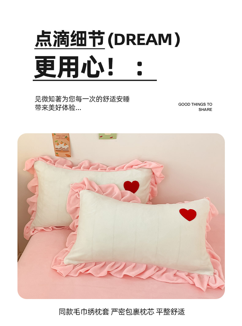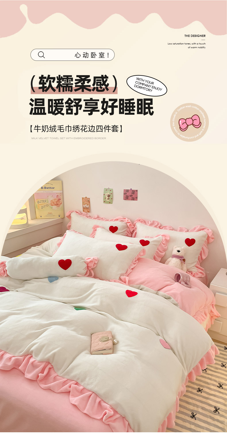 商品名称:丝印良品 2024秋冬韩版公主风牛奶绒四件套 爱心