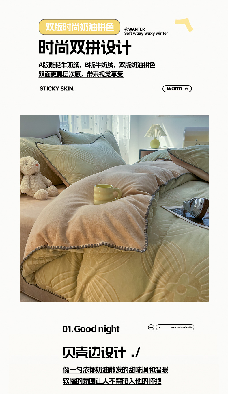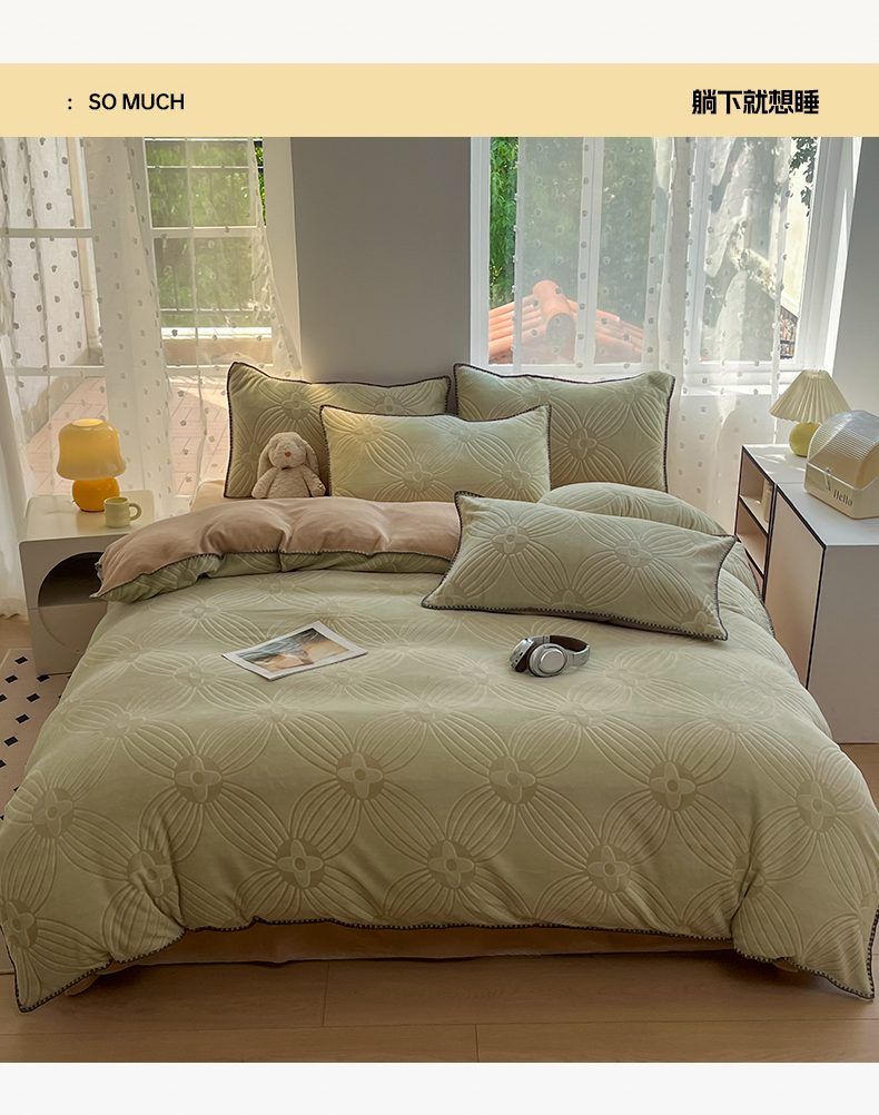 当前位置: 91家纺网 > 商品网购 > 床品套件 > 四件套 > 牛奶绒四件套 > 晚依家纺 2024新款230g全消光牛奶绒四件套 新泽西-绿