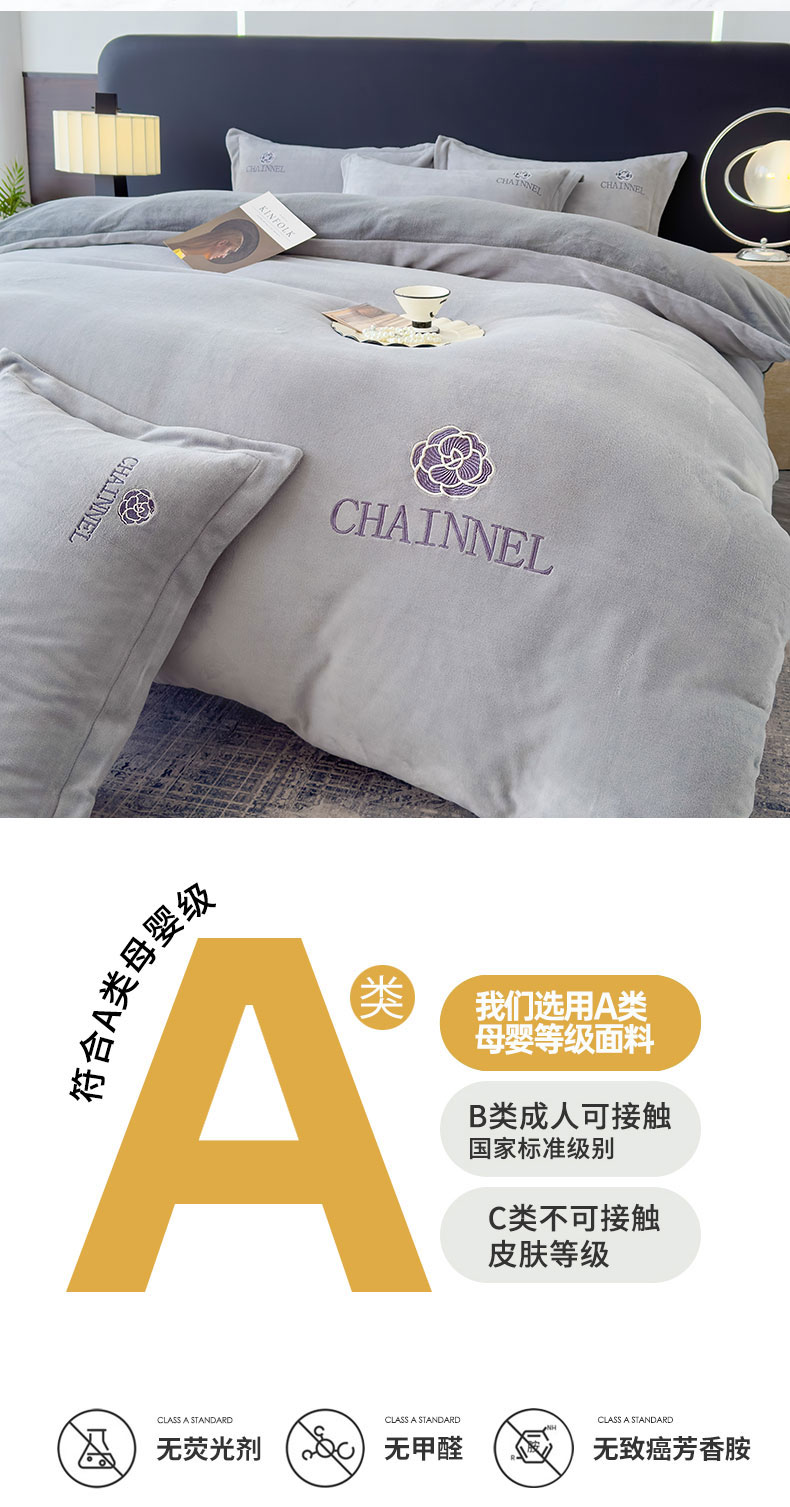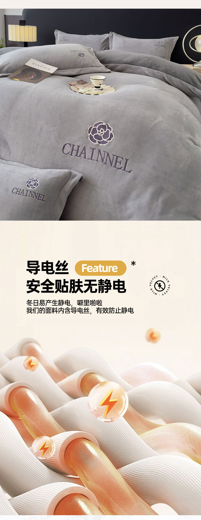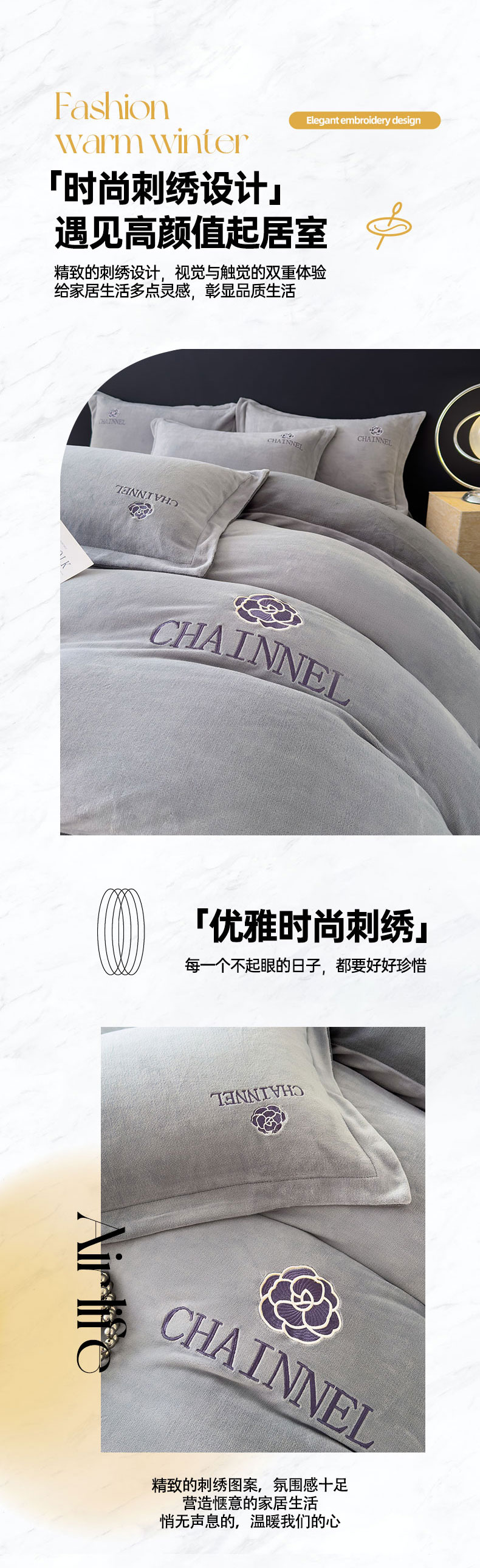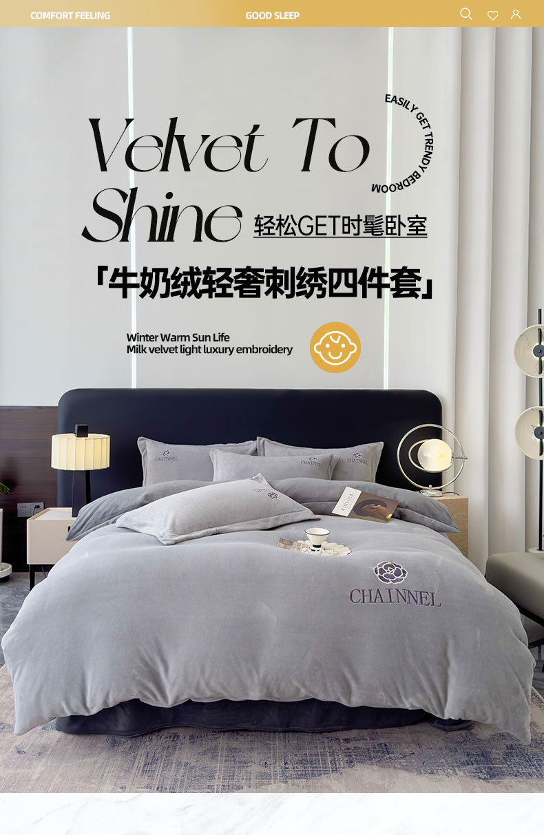 当前位置: 91家纺网 > 商品网购 > 床品套件 > 四件套 > 牛奶绒四件套 > 灰鲸 2025新款A类牛奶绒轻奢刺绣四件套 南笙-纳多灰+山灰