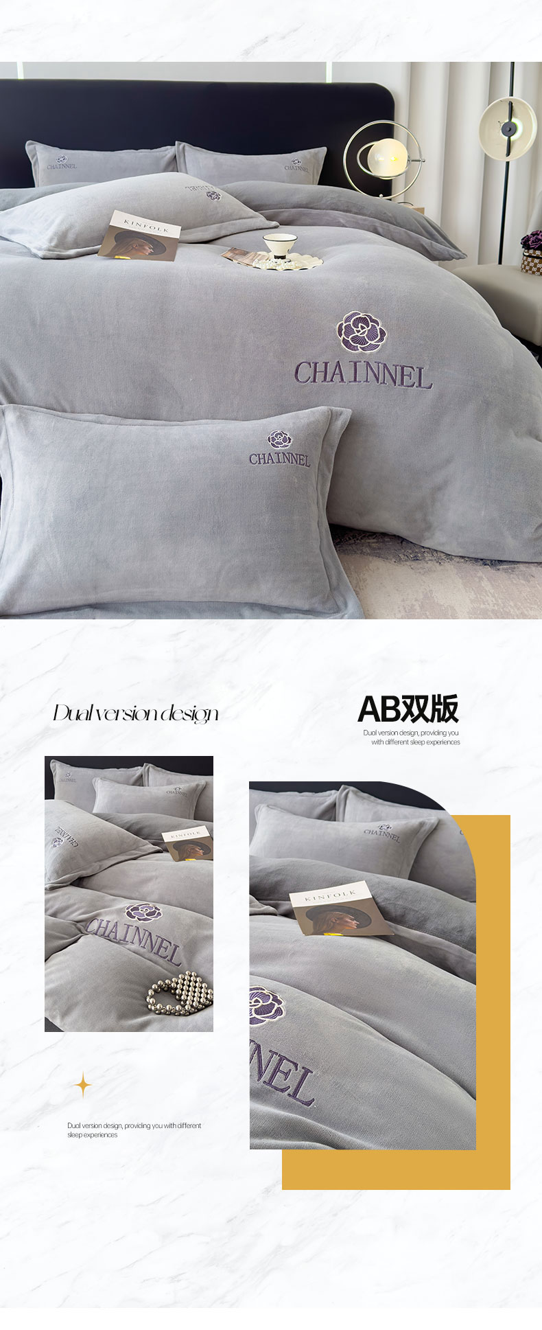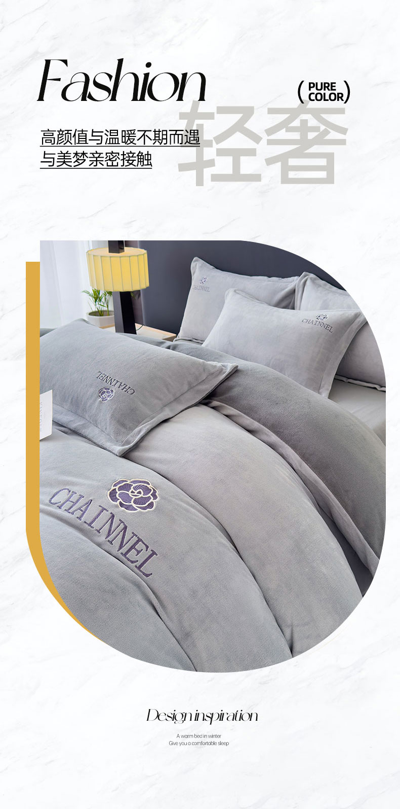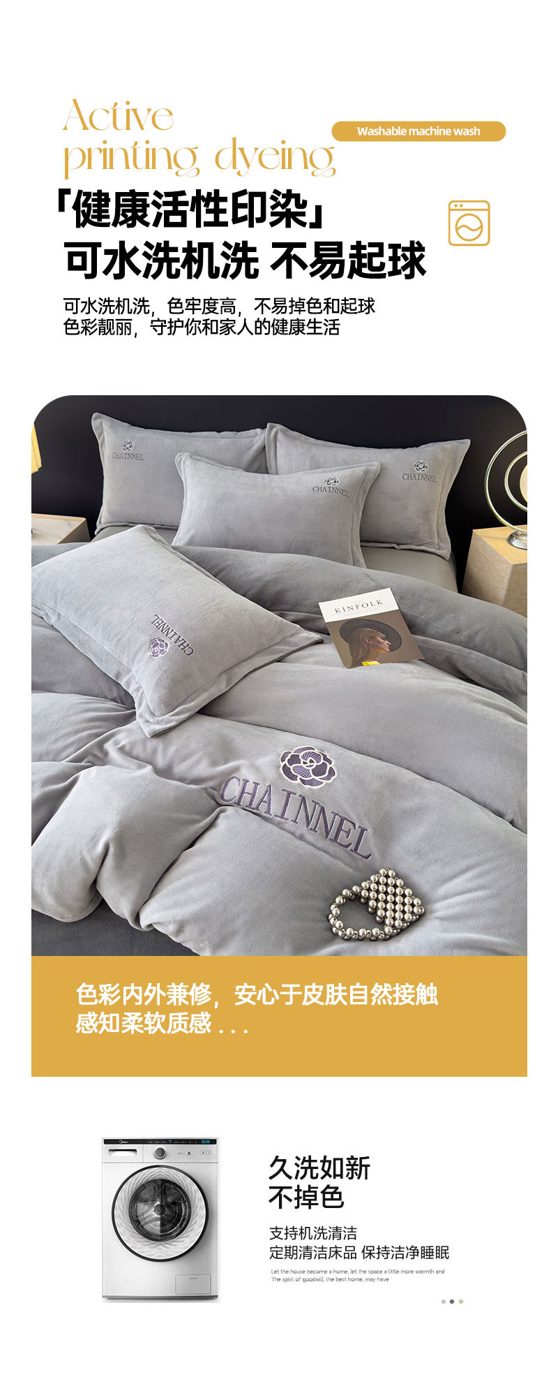 当前位置: 91家纺网 > 商品网购 > 床品套件 > 四件套 > 牛奶绒四件套 > 灰鲸 2025新款A类牛奶绒轻奢刺绣四件套 南笙-纳多灰+山灰