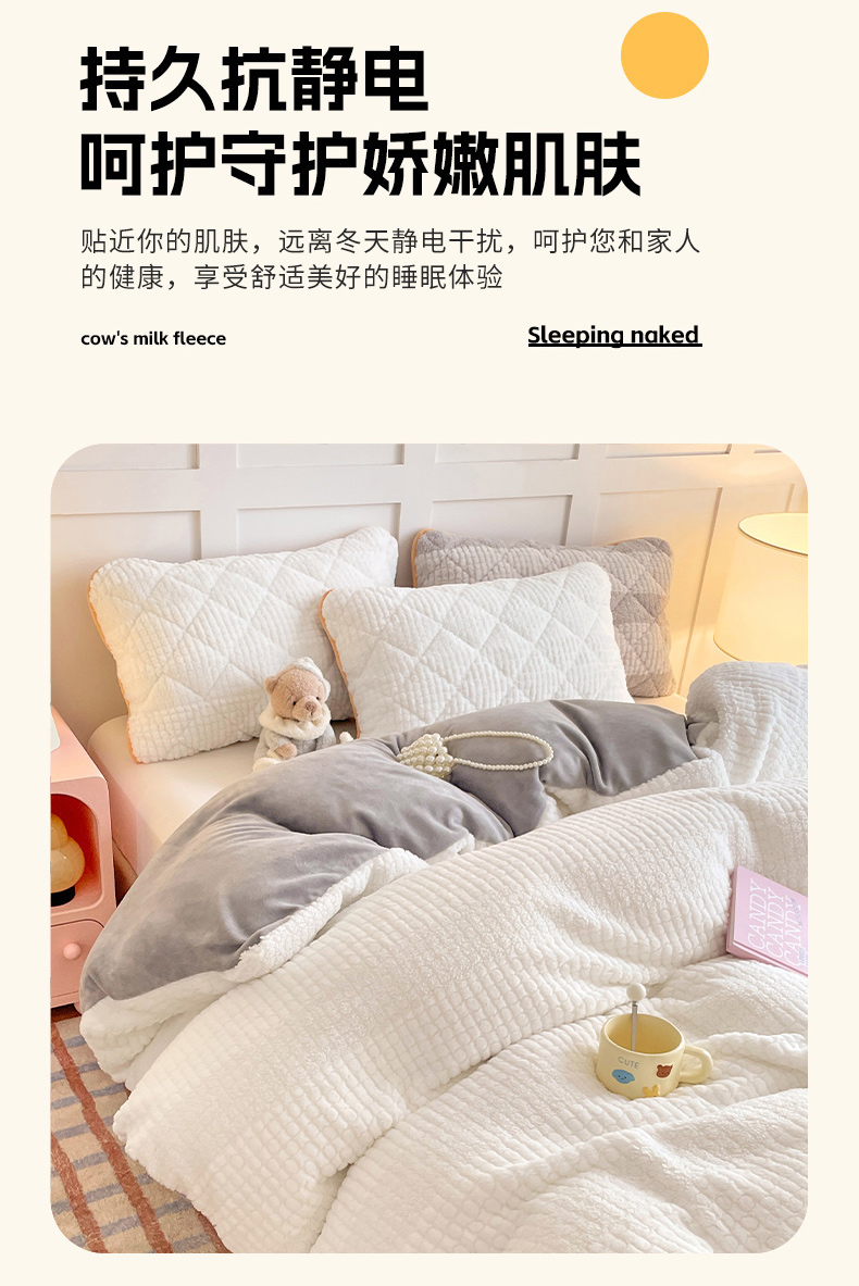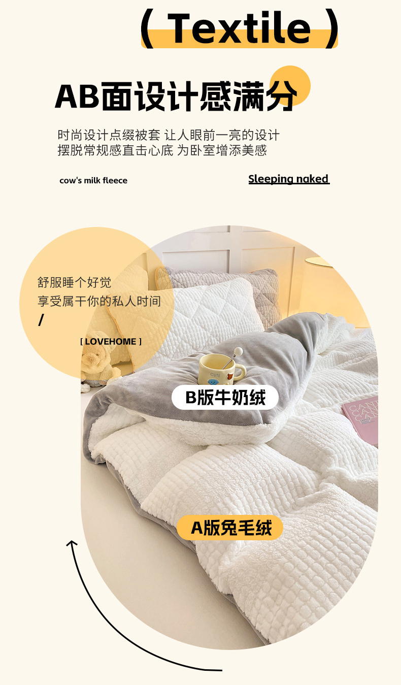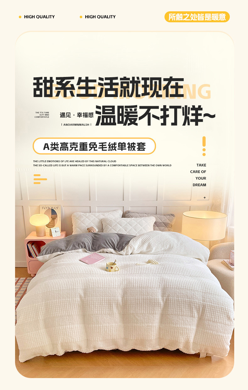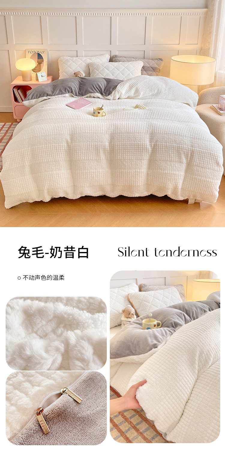 商品名称:福来临家纺 2025新款高克重兔毛绒被套 兔毛被套-奶昔白