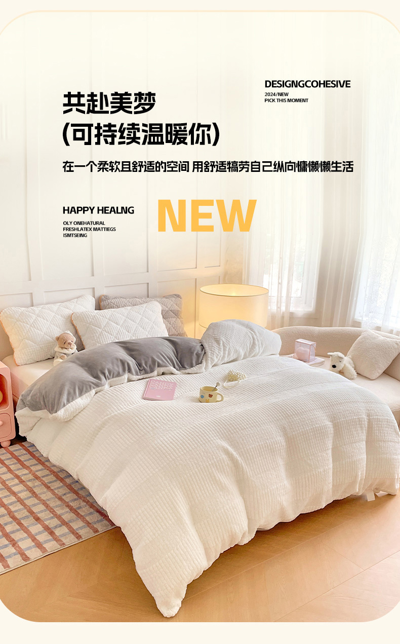 福来临家纺 2025新款高克重兔毛绒被套 兔毛被套-奶昔白
