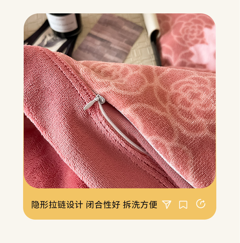 商品名称:茉保家纺 2024新款包边款印花牛奶绒床盖四件套 花恋 粉