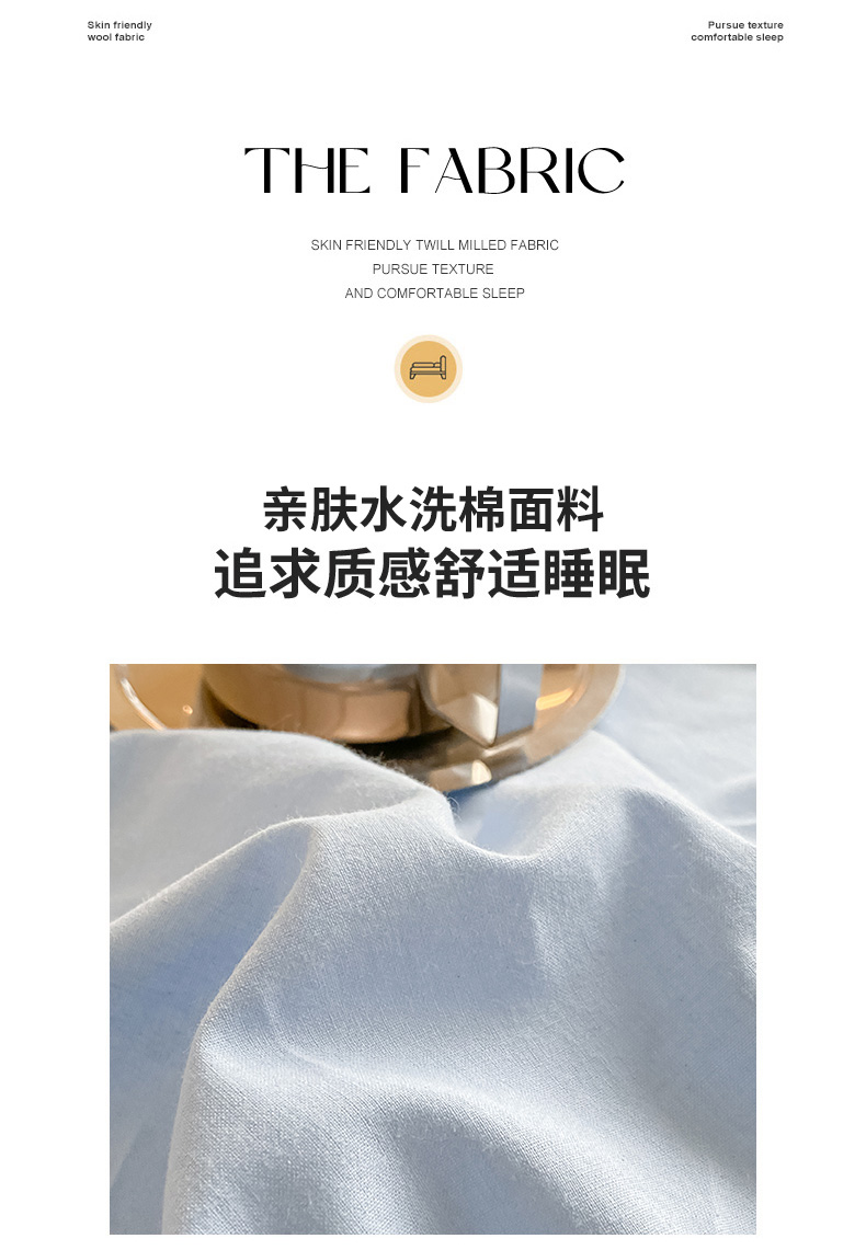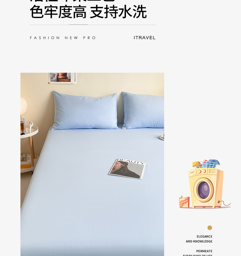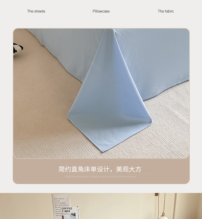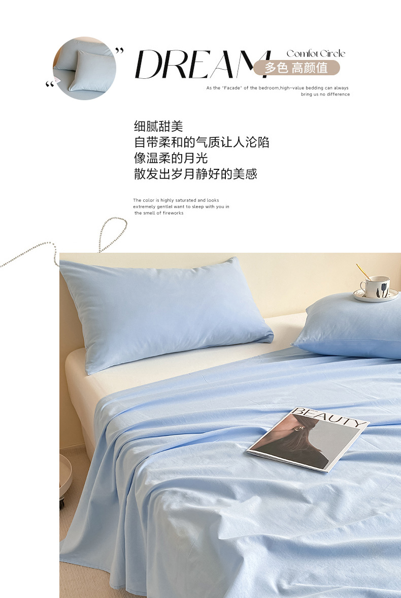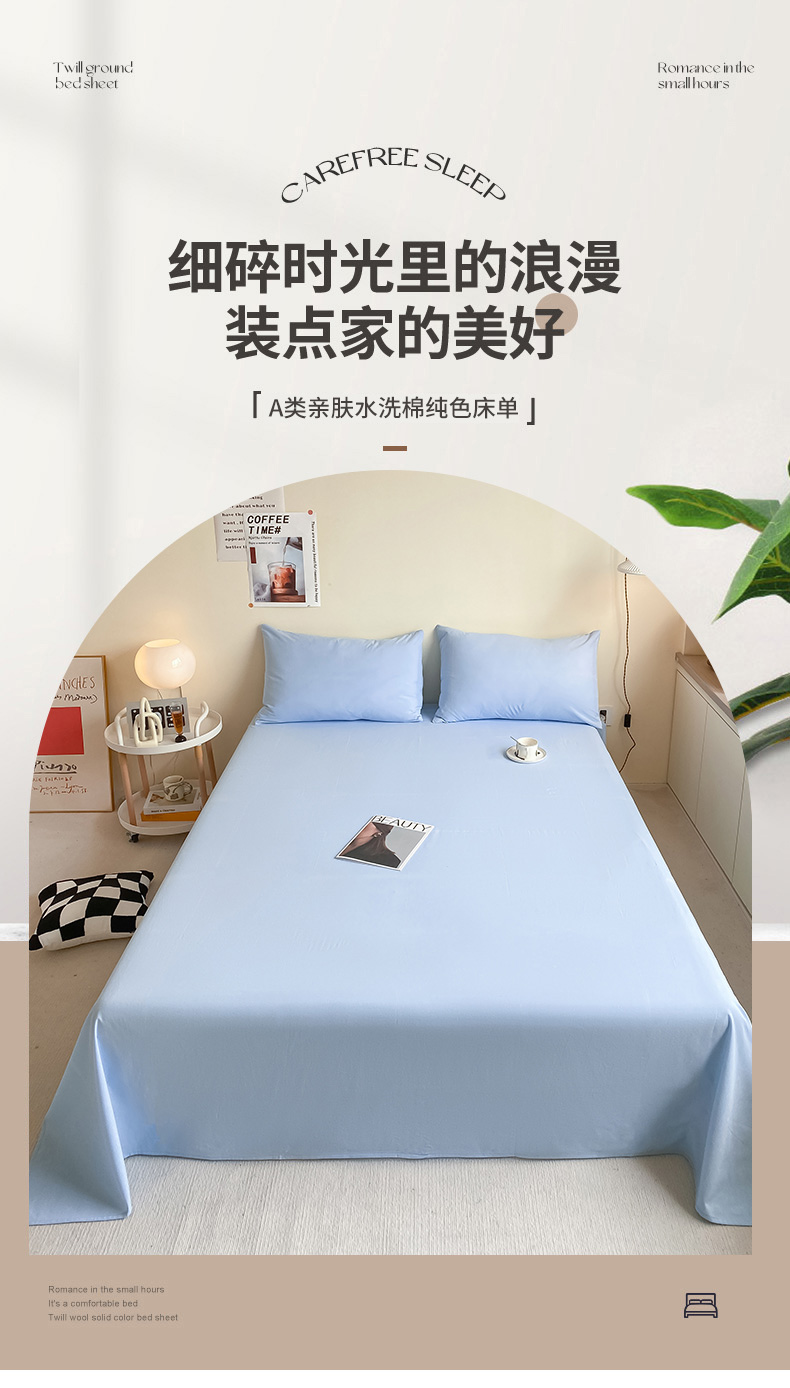 • 91家纺网 家纺一手货源 找家纺 眠帛家居 2024新款A类亲肤水洗棉纯色单品床单三件套 天空蓝