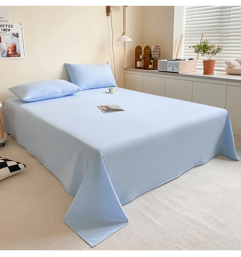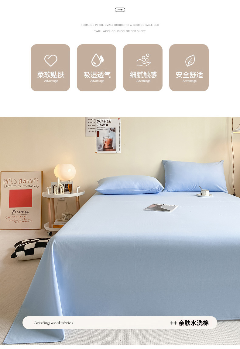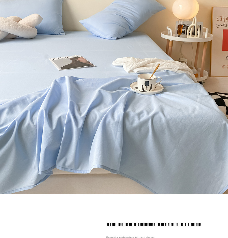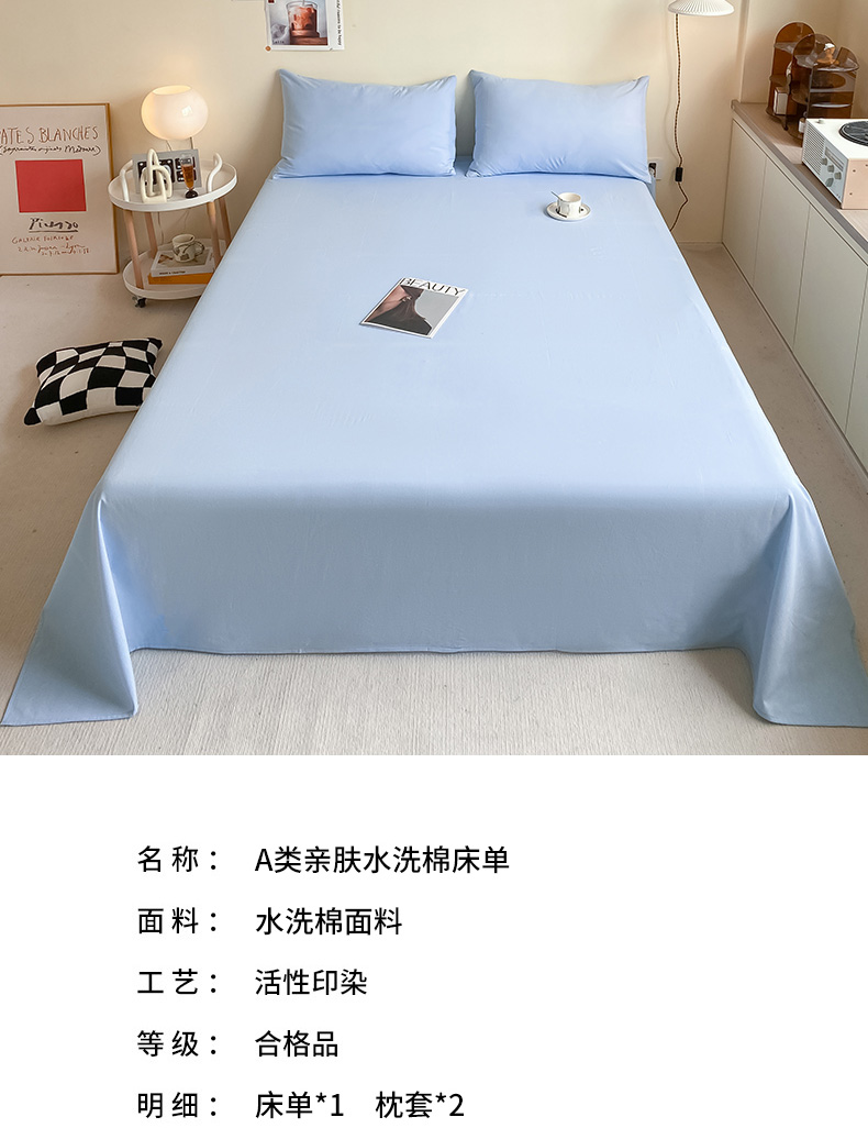 眠帛家居 2024新款A类亲肤水洗棉纯色单品床单三件套 天空蓝