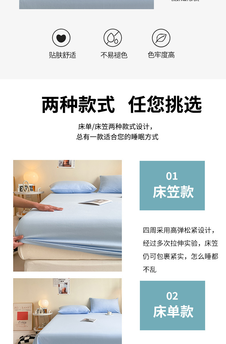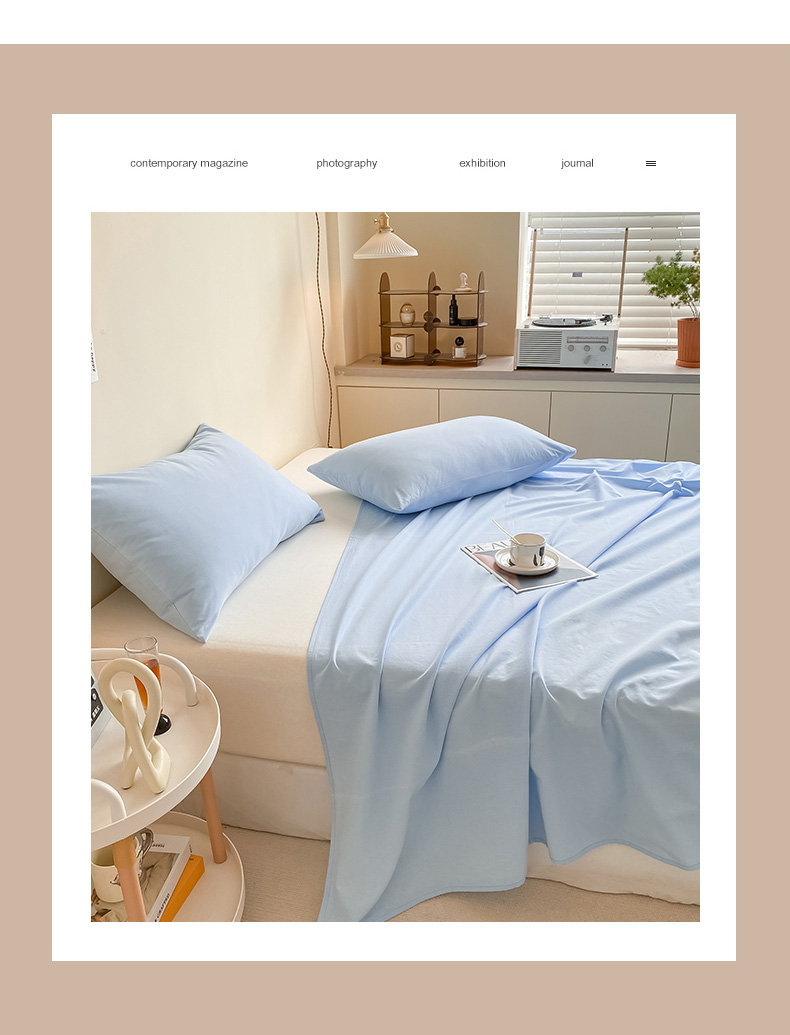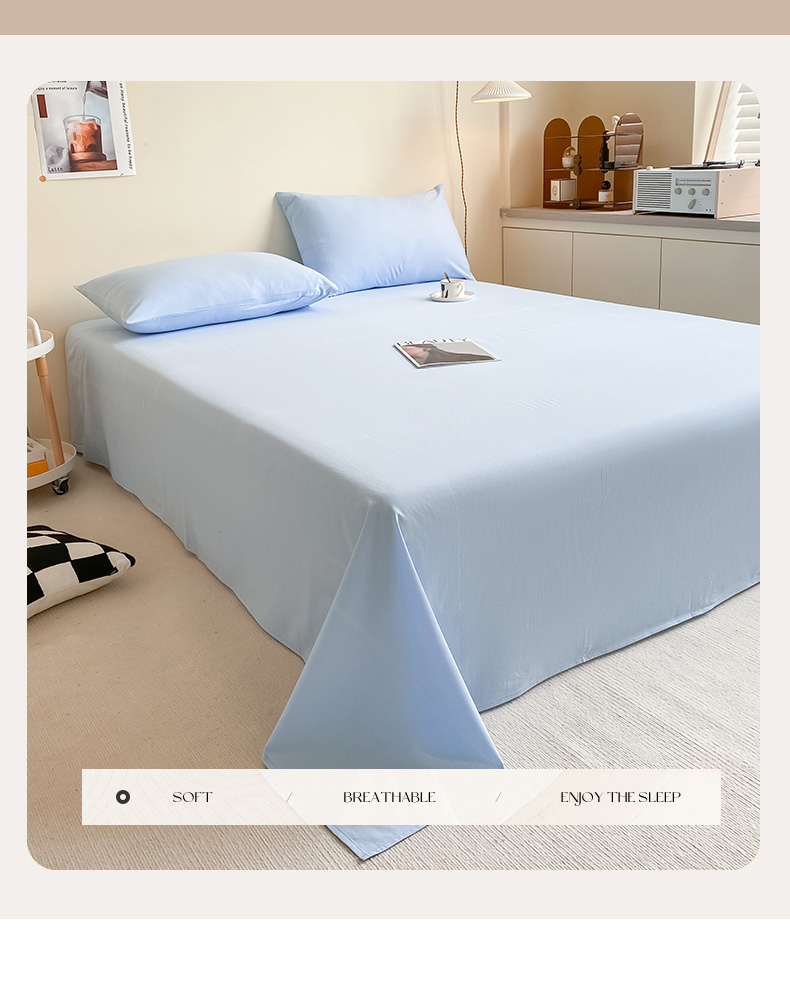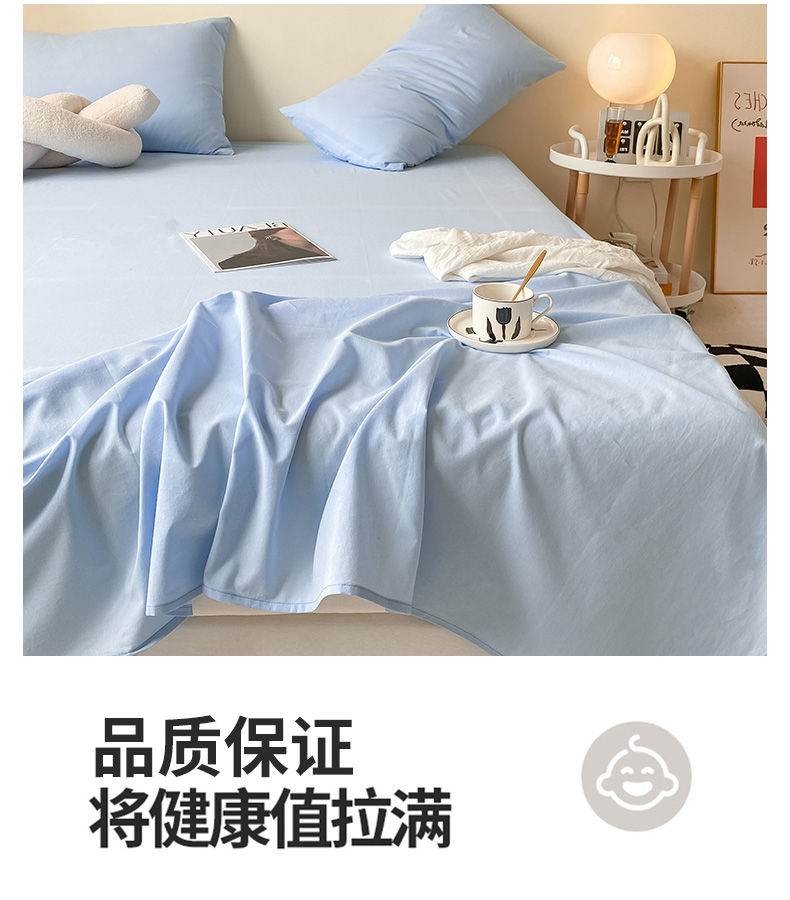 眠帛家居 2024新款A类亲肤水洗棉纯色单品床单三件套 天空蓝