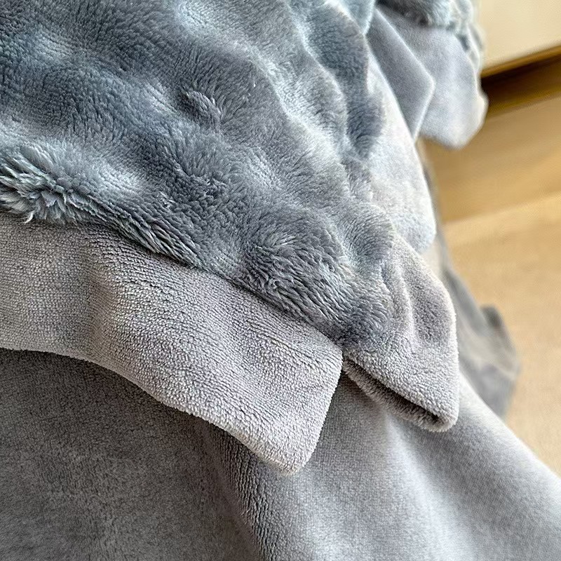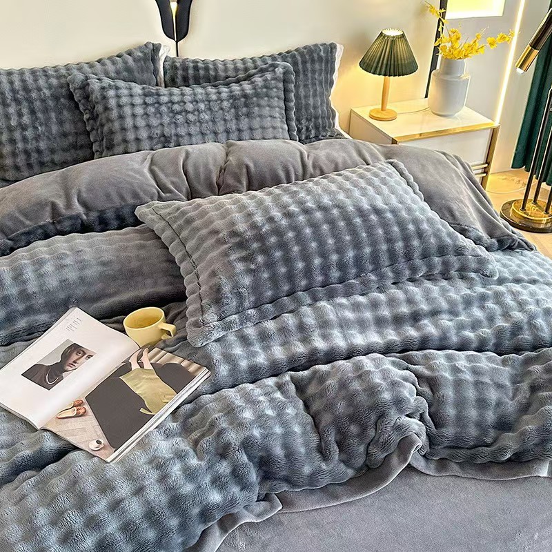 商品名称:玖琳家纺 2024新款A类大泡泡懒兔毛绒+牛奶绒四件套 灰色