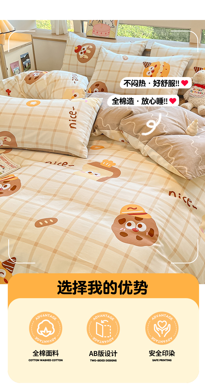 商品名称:本制 2024秋冬新款12868全棉印花四件套 烘培-米