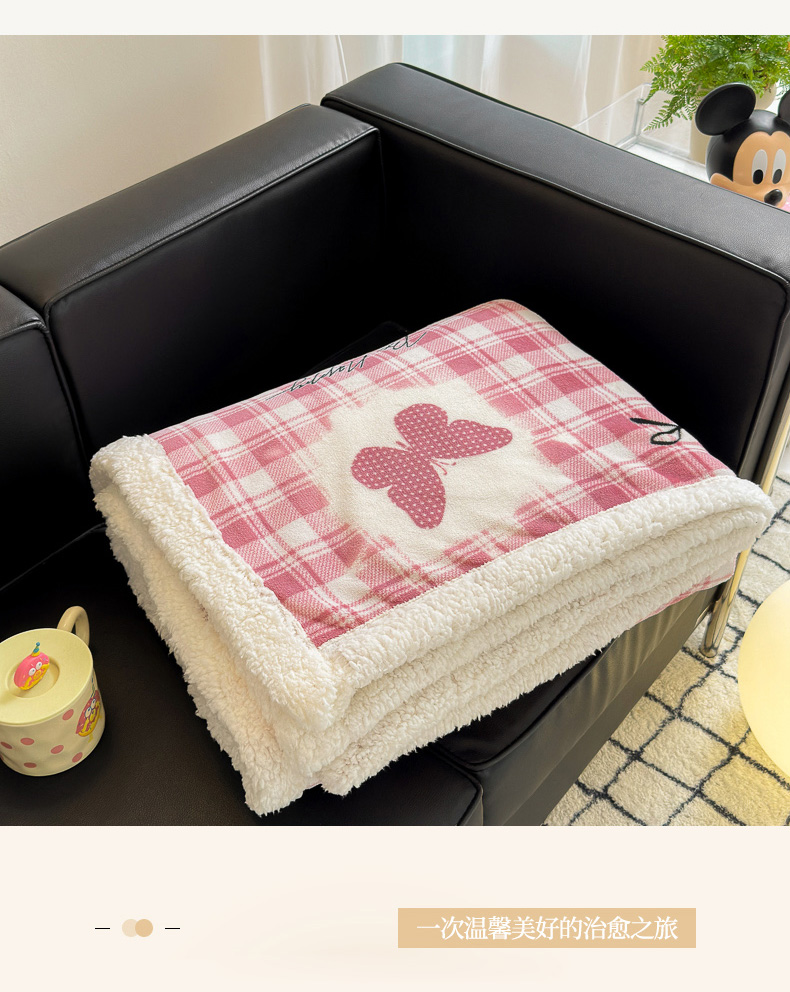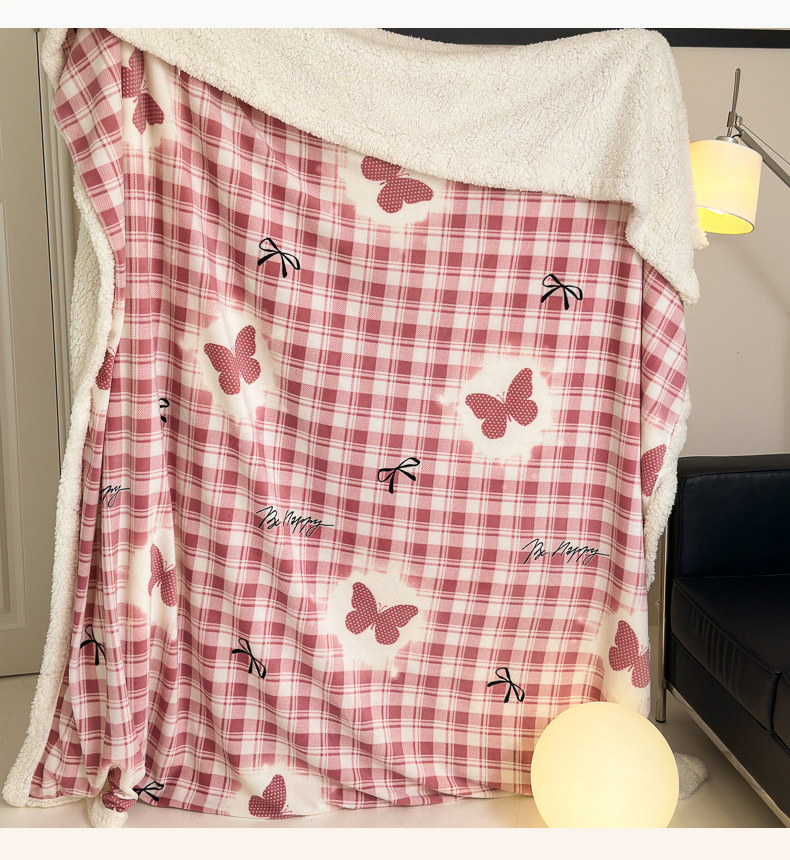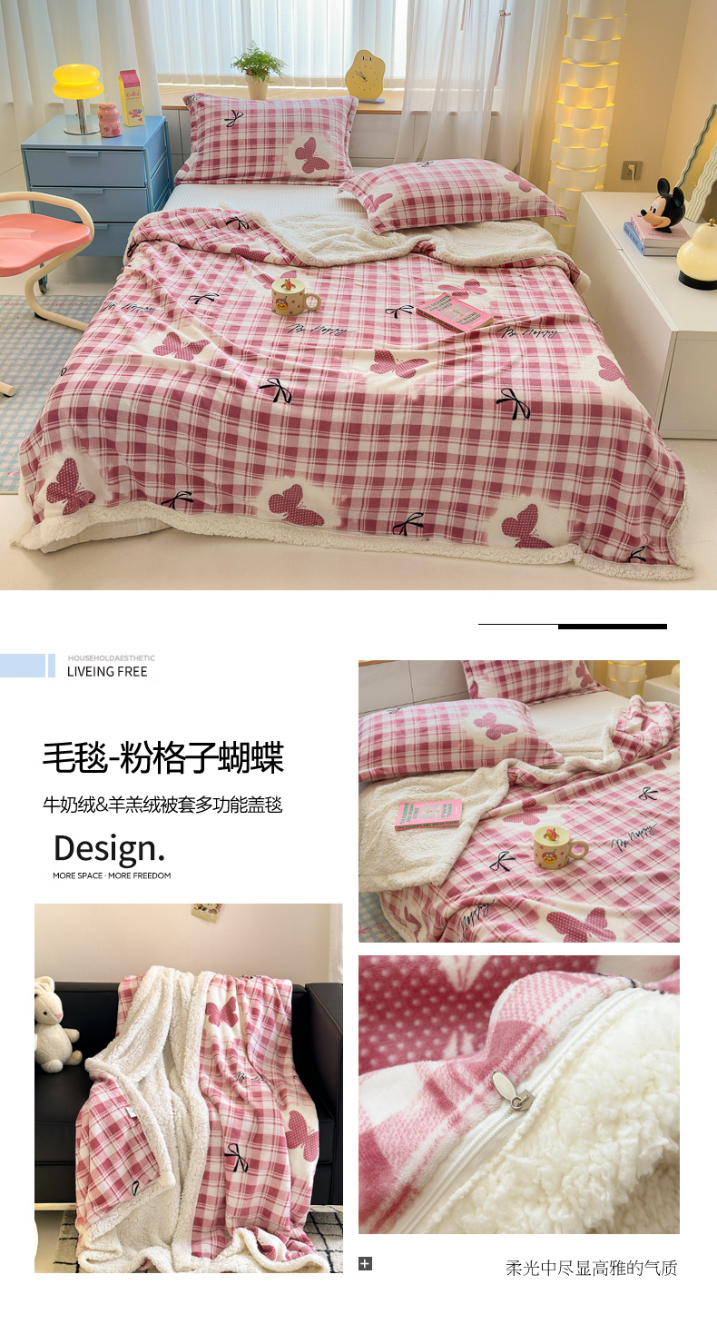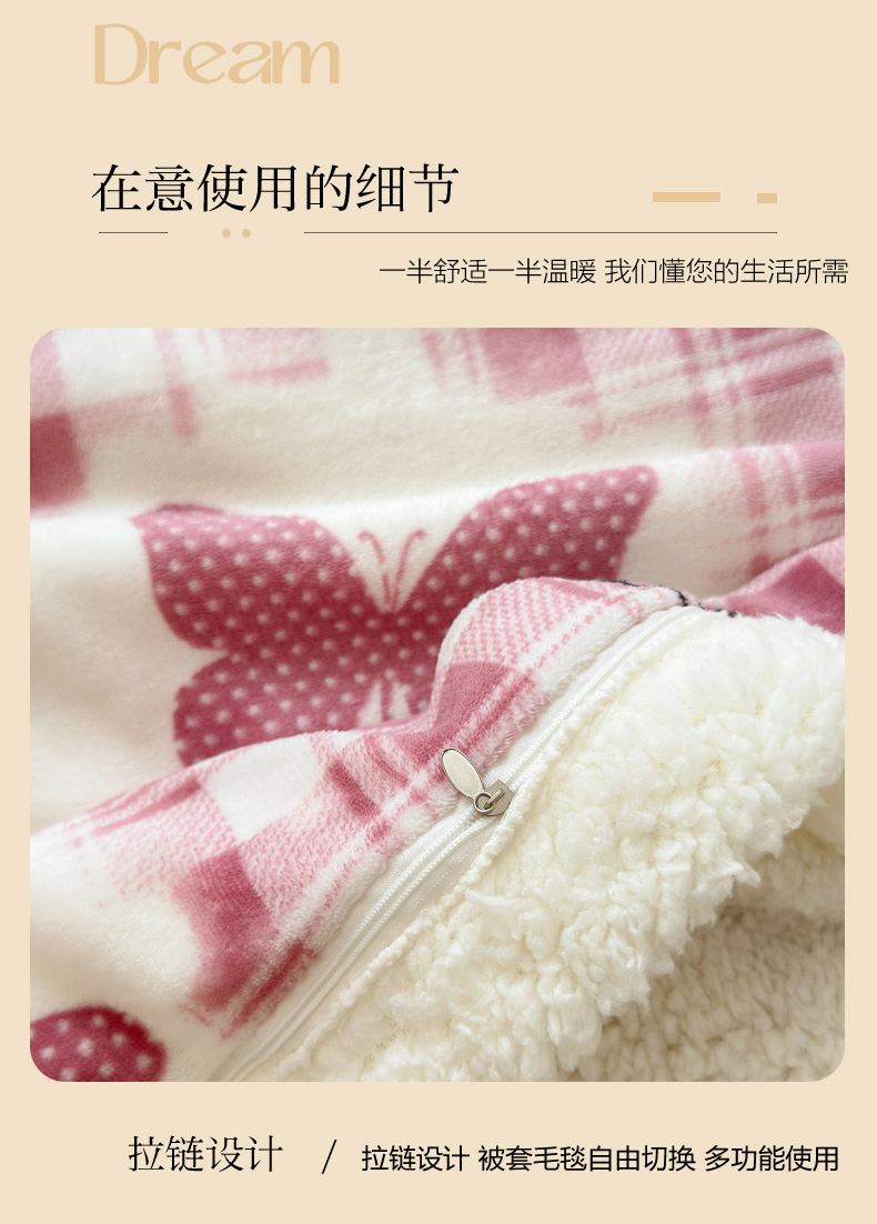 商品名称:花伞家居 2024直播新款牛奶绒羊羔绒多功能复合拉链被套款毛毯 毛毯-粉格子蝴蝶