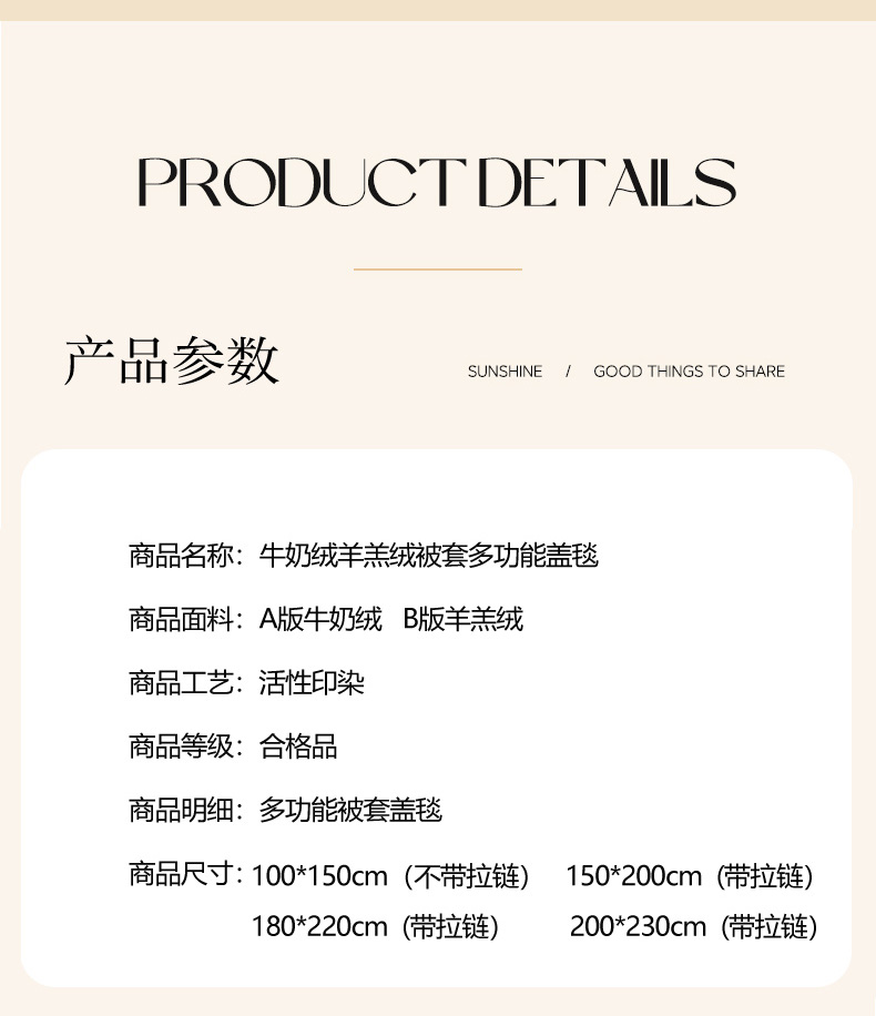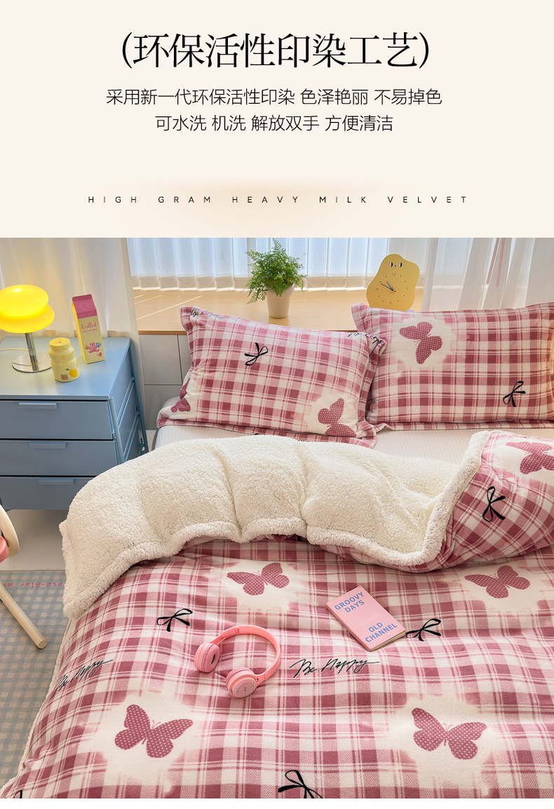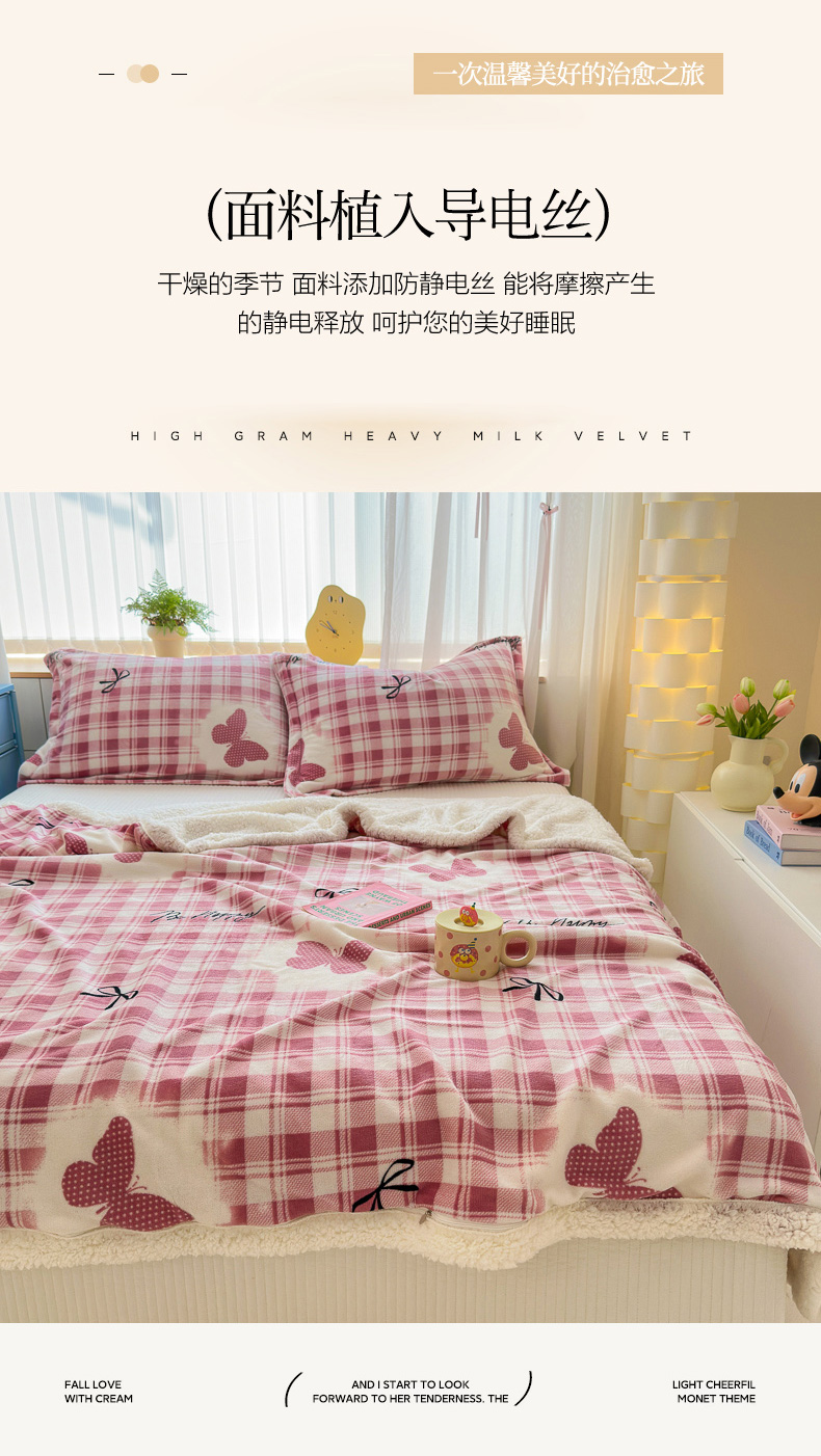 商品名称:花伞家居 2024直播新款牛奶绒羊羔绒多功能复合拉链被套款毛毯 毛毯-粉格子蝴蝶
